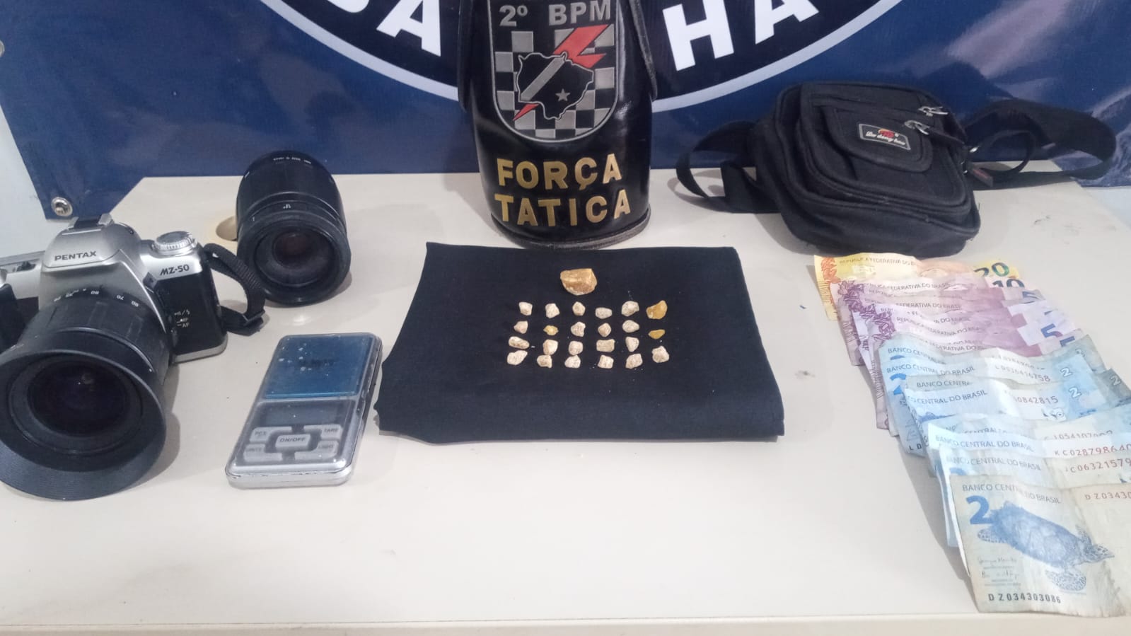 Nesta sexta-feira, por volta das 12h, uma guarnição da Força Tática do 2º BPM durante patrulhamento ostensivo e preventivo no bairro São João, quando na rua Teotonio Pimentel Mendes, visualizou um indivíduo que ao perceber a aproximação da viatura policial tentou se desfazer de uma pochete e de uma bolsa que trazia junto ao corpo. Diante da fundada suspeita, foi realizada a abordagem policial e durante a busca pessoal os policiais vieram a localizar 23 “pedras” de crack, e 1 “pedra” da mesma substância, ainda não fracionada para a venda (totalizando 9,7 gramas) e 1 câmera fotográfica, que segundo o abordado teria sido obtida como forma de pagamento por entorpecentes.