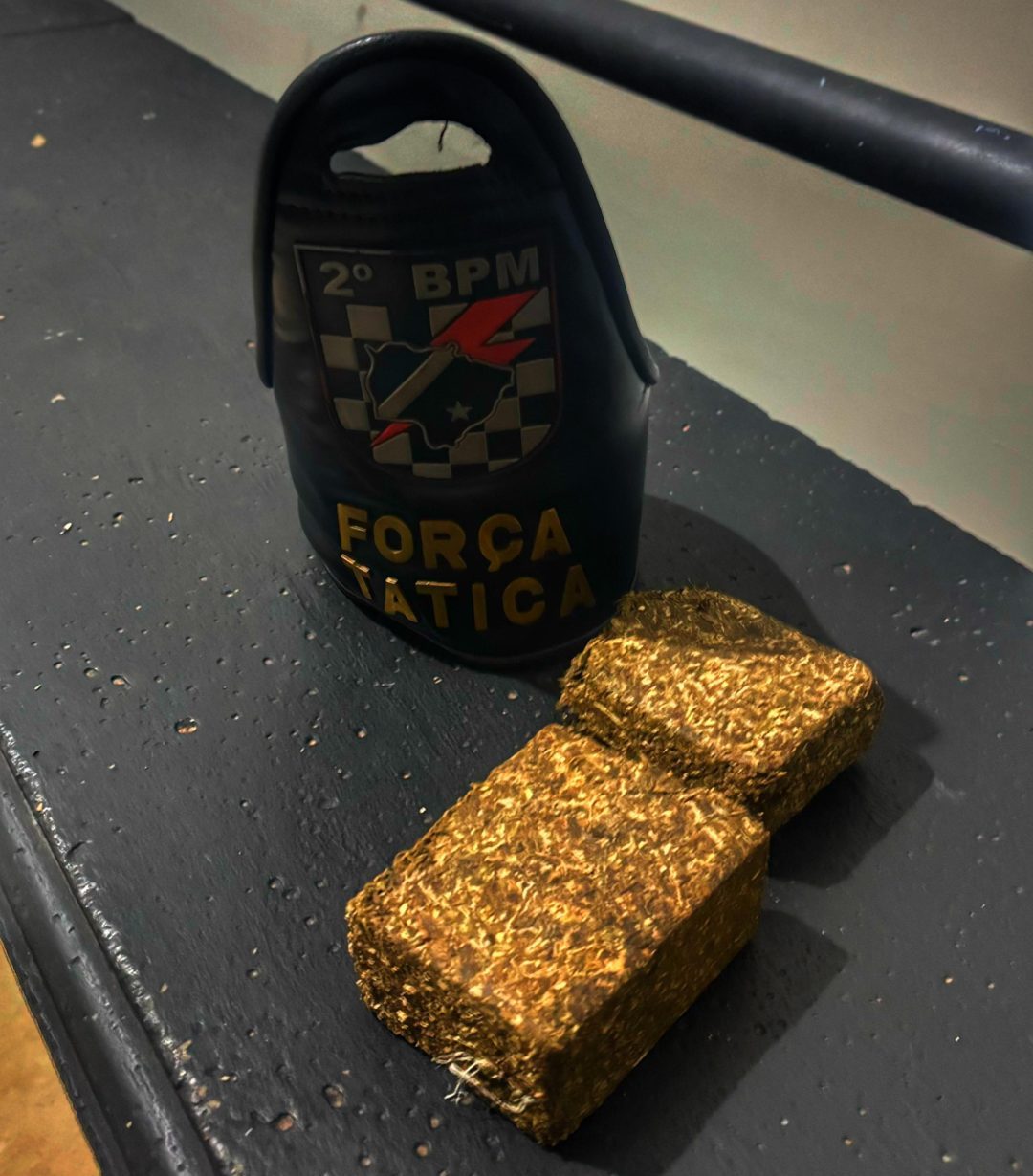 Nesta quinta-feira, às 20h50, uma guarnição da Força Tática do 2º BPM durante atendimento de denúncia relatando ameaça dirigida a transeuntes e funcionários de uma drogaria localizada na rua José Hamilcar Congro Bastos, onde durante abordagem policial de um masculino de 28 anos, que se encontrava visivelmente alterado, os policiais vieram a localizar em sua posse 2 porções de substância com características análogas à maconha (pesando 412 gramas).
