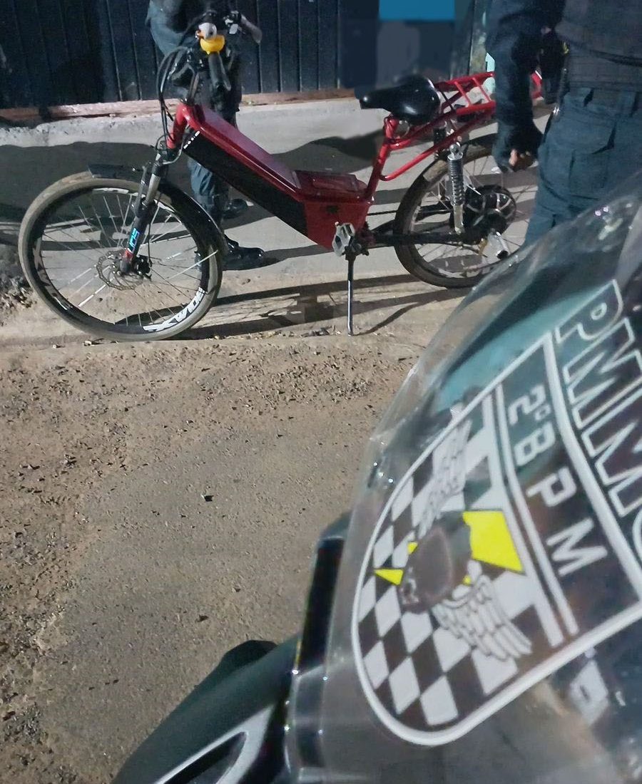 Nesta quarta-feira, por volta das 20h, uma guarnição do GETAM do 2º BPM durante policiamento ostensivo no bairro Vila Piloto, quando na rua Vinte e Oito realizou a abordagem policial de um adolescente de 17 anos, que trafegava em uma bicicleta elétrica, de cor predominante vermelha, onde durante checagens nos sistemas policiais constataram que a bicicleta elétrica se encontrava em busca, por ter sido roubada no dia 29 de julho, no momento em que a vítima transitava na rua Aniceto Arão e foi abordada por 2 criminosos que se encontravam em outra bicicleta elétrica, onde após ameaçarem a vítima com uma arma de fogo roubaram a bicicleta.