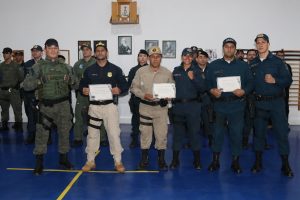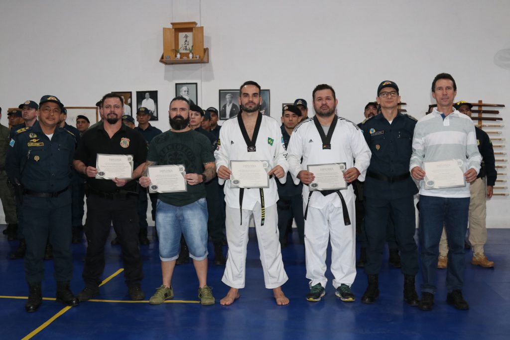 Na ocasião foram agraciados com o certificado de Honra ao Mérito, por se destacarem nas aulas de Instrução de Nivelamento Técnico de Instrutores, o Cabo PM Maurício Lemos da Silva, primeiro colocado, o 1º Sargento PM Walter Lacerda de Lima, segundo colocado e o Soldado PM Anderson Yasuhide Okumoto, terceiro colocado, e nas aulas de Estágio de Defesa Pessoal, o CB PM Willian Malaquias Vilela, primeiro colocado, o 2º SGT BM Kleston Rodrigues Alves, segundo colocado e o Agente da Policia Rodoviária Federal Wagner Alves Pereira, terceiro colocado.