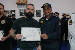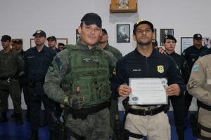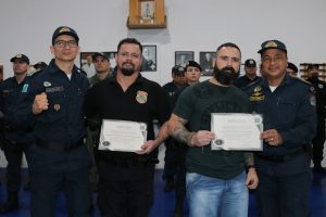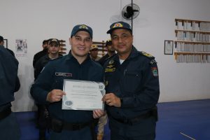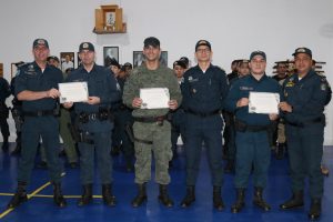 Na ocasião foram agraciados com o certificado de Honra ao Mérito, por se destacarem nas aulas de Instrução de Nivelamento Técnico de Instrutores, o Cabo PM Maurício Lemos da Silva, primeiro colocado, o 1º Sargento PM Walter Lacerda de Lima, segundo colocado e o Soldado PM Anderson Yasuhide Okumoto, terceiro colocado, e nas aulas de Estágio de Defesa Pessoal, o CB PM Willian Malaquias Vilela, primeiro colocado, o 2º SGT BM Kleston Rodrigues Alves, segundo colocado e o Agente da Policia Rodoviária Federal Wagner Alves Pereira, terceiro colocado.
