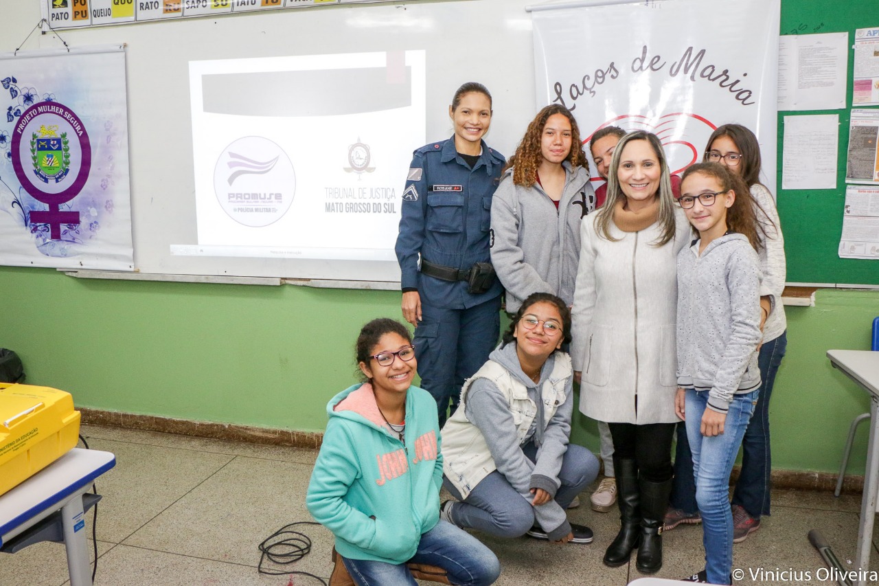 Jardim (MS) – Na sexta-feira (16), a cabo PM Rosane Souza Cabreira encerrou o ciclo de palestras “Meninas empoderadas, mulheres fortes”, realizado na escola Estadual Antônio Pinto Pereira, em Jardim. As palestras foram executadas em parceria com a Organização Laços de Maria.