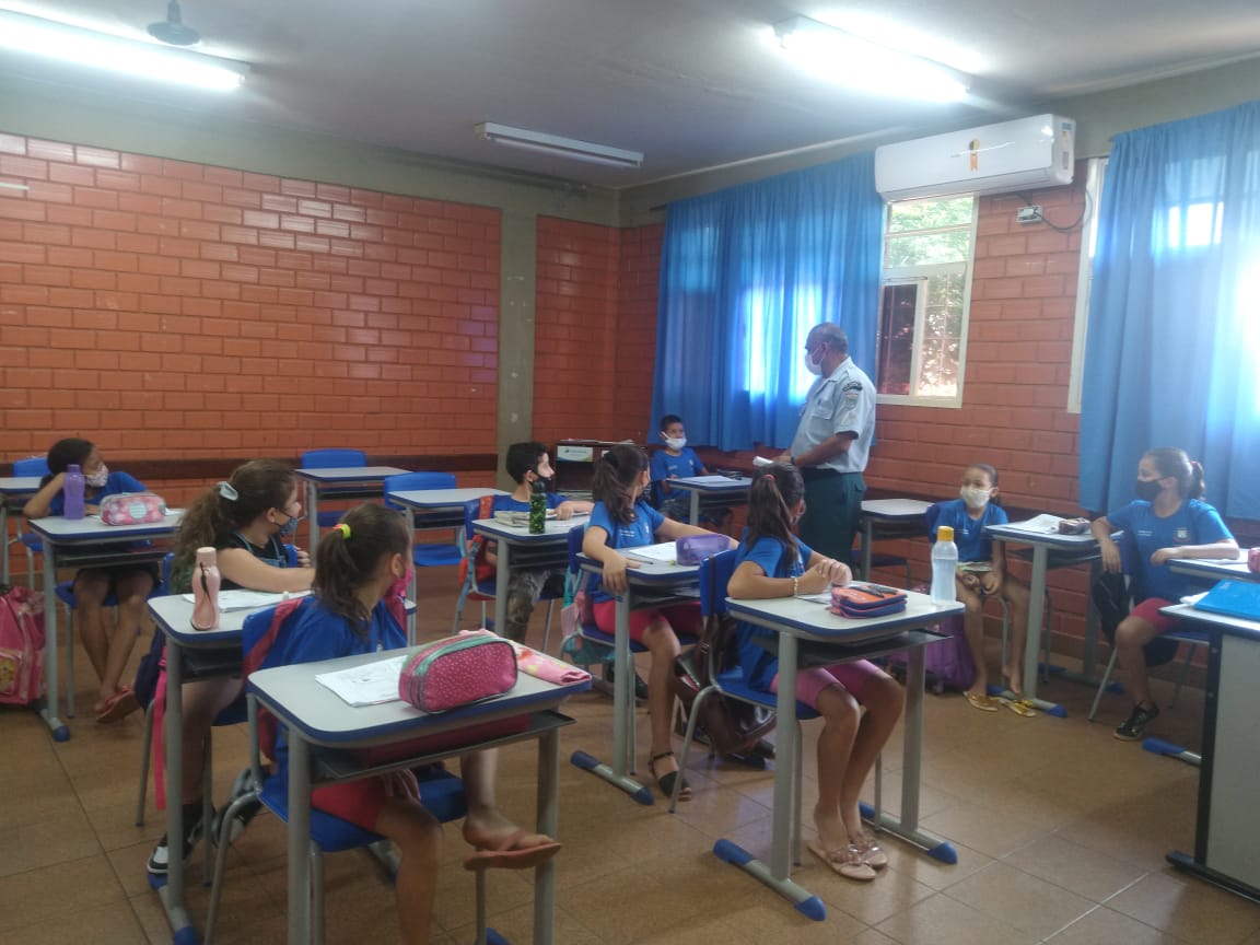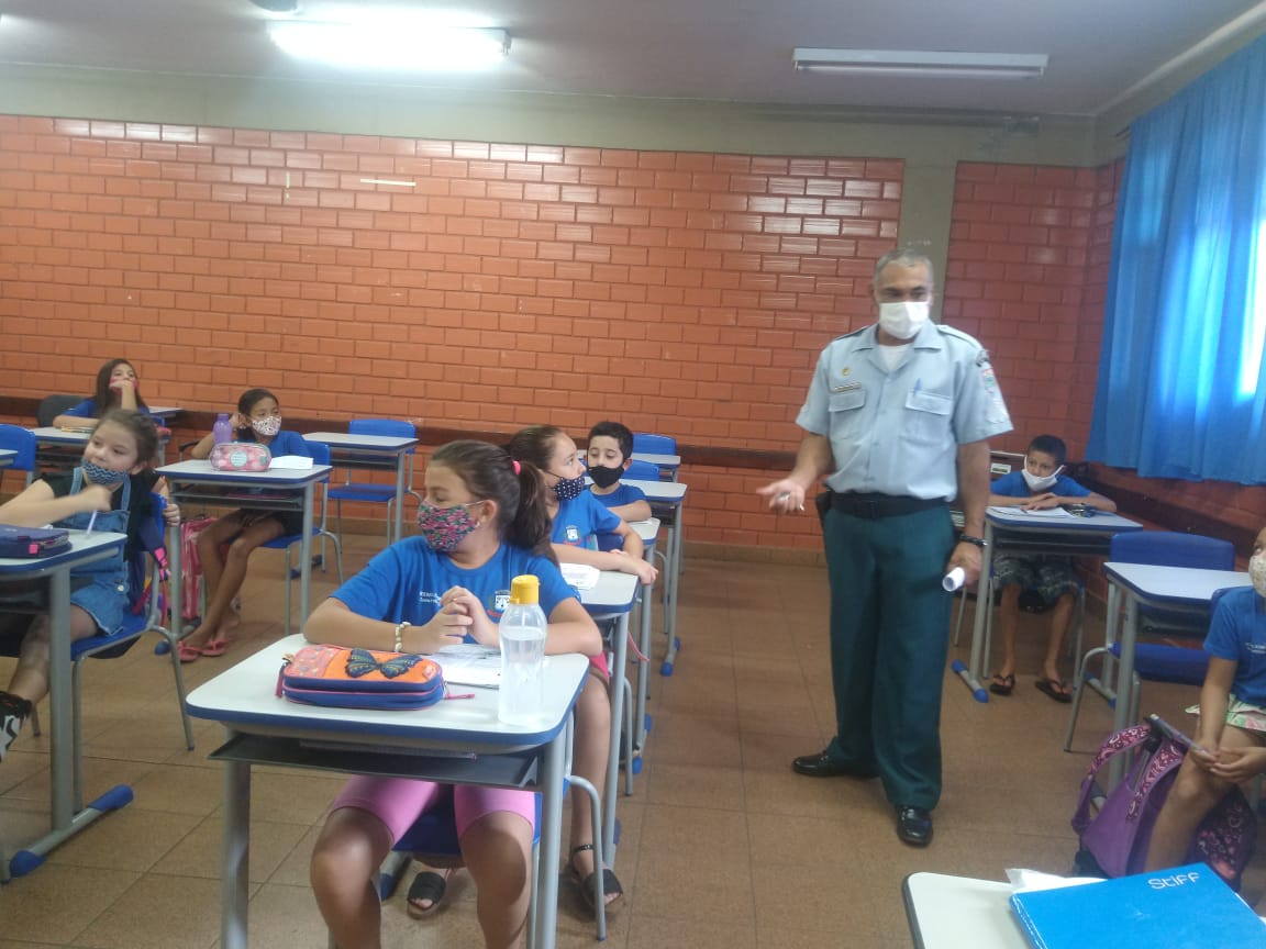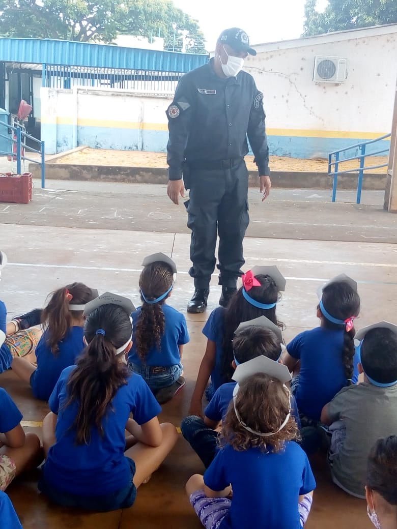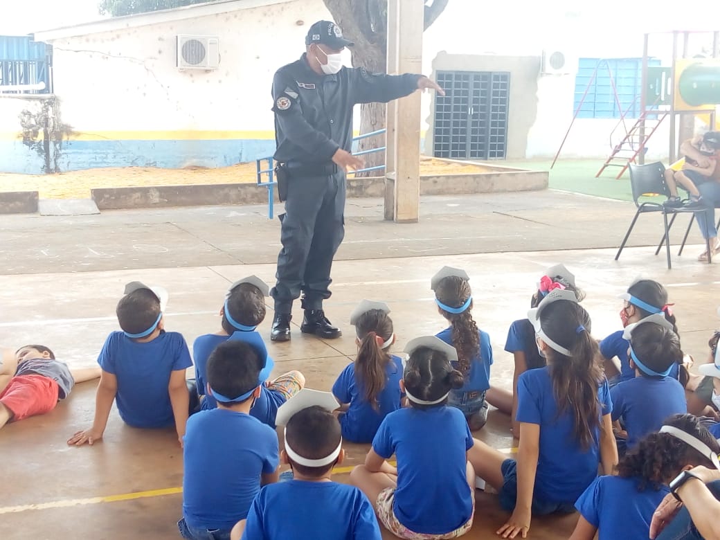 As palestras foram ministradas pelo Sargento PM Edgar, aos alunos do Ensino Fundamental e Infantil, das Escolas Municipais Profº Paulo Ney e Risque e Rabisque.