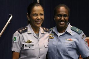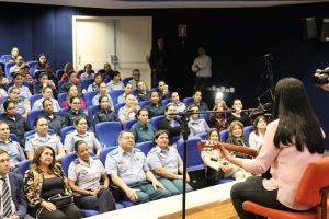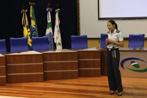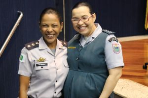 A segunda palestra foi ministrada pela coronel PM Cynthiane Maria Santos, reconhecida por ser a primeira mulher a comandar uma tropa de elite no Brasil: o Batalhão de Choque do Distrito Federal, e que atualmente é responsável pela segurança do governador do DF, Rodrigo Rollemberg.