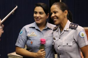 A coronel PM é também a única a integrar o quadro de chefes na Casa Militar do Distrito Federal e em sua palestra procurou recomendar que mulheres tenham coragem para se arriscar na carreira sem deixar a feminilidade de lado.