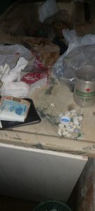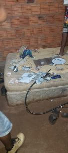O imóvel não possui muros ou barreiras externas e ao acessar a parte externa da casa, os militares flagraram através da abertura da janela outros 03 usuários fazendo uso de drogas, bem como puderam visualizar dezenas de porções de crack, porções de maconha, dinheiro, cadernos de anotação e pedaços de sacolas picotadas para embalar entorpecente sobre um colchão.