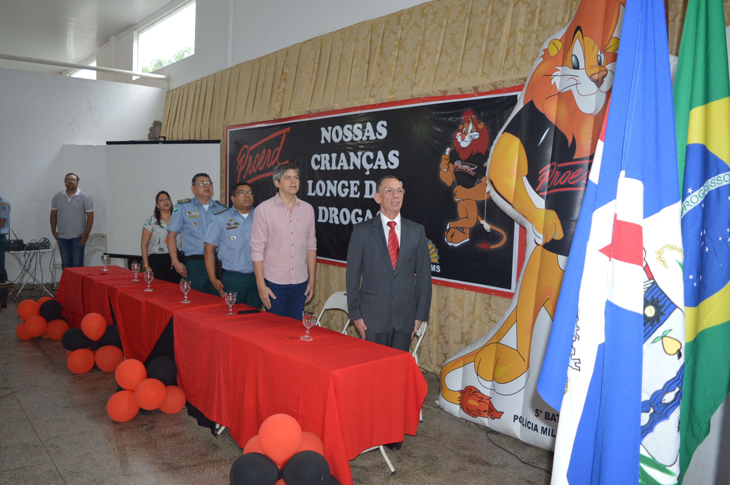 Participaram da Formatura, o Comandante Geral da PMMS, Coronel Waldir Ribeiro Acosta, o Comandante do 5º BPM, Major Luiz César de Souza Herculano, o ex-Coordenador Estadual do Proerd, Coronel Oscar Rodrigues, O comandante da Polícia Militar Ambiental de Coxim, Tenente Marciel Oliveira Rodrigues, Prefeito municipal Aluísio São José, a Secretária Municipal de Educação Raquel Singh e a Vereadora Dinalva Mourão e demais autoridades.