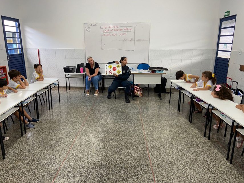 Coxim (MS)- A Polícia Militar iniciou na última semana (03/05) as aulas do Proerd-Kids (Programa Educacional de Resistência às Drogas e à Violência), para os alunos da educação infantil das Escolas Particulares de Coxim.