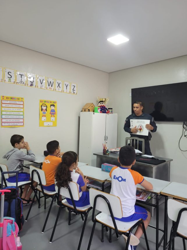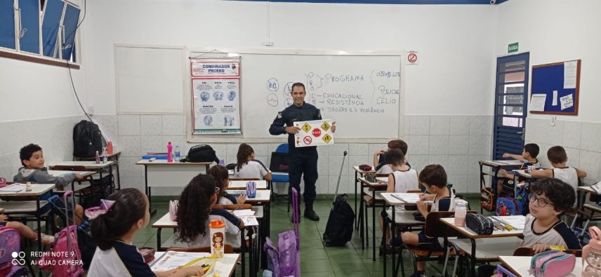Nas aulas de hoje (10/05), os instrutores do Proerd no município, Sargento PM Célio, Cabo PM Anderson e Soldado PM Driele percorreram as salas de aulas da Escola Enom – Novo Mundo e FEC (Fundação Educacional de Coxim), onde puderam explicar na teoria e na prática aos alunos como atravessar a rua, utilizando-se sempre da faixa de pedestre.