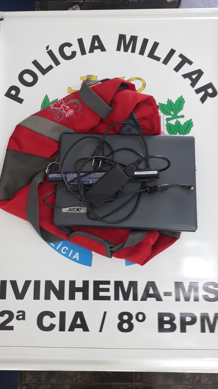 A equipe de rádio patrulha recuperou também um aparelho Notebook furtado no dia 23 de julho após receber o chamado dos bombeiros militares, que conduziram um jovem já conhecido pela prática de furtos para atendimento no hospital municipal. Em conversa com o jovem de 19 anos, que confessou a autoria do furto, os policiais militares obtiveram a informação de que o computador estava nos fundos de uma residência abandonada no bairro Triguinã. Imediatamente foram até o local indicado e localizaram o eletrônico.