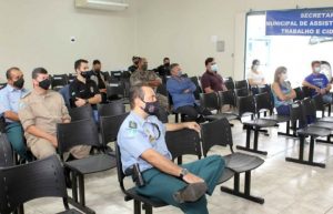 Jardim (MS) – Às 14h00min de ontem (11), o Comandante do 11º BPM, tenente-coronel Daniel Elias dos Santos, representando o Comandante do Comando de Policiamento de Área 3 (CPA-3), coronel Airton Leonel Praeiro, bem como, o Comandante do 3º Pelotão PM de Porto Murtinho, capitão Wellington Lopes Lafayette Julião, participaram de uma reunião, realizada na Sede da Secretaria Municipal de Assistência Social de Porto Murtinho, com representantes das demais Forças de Segurança, presentes no município, integrantes da Comissão de Controle Sanitário de Estado (CCS/MS), autoridades municipais de Saúde e o Prefeito Municipal, Derlei João Delevatti, a fim de definirem estratégias de controle e redução dos crescentes índices de casos positivos de COVID-19 no município.