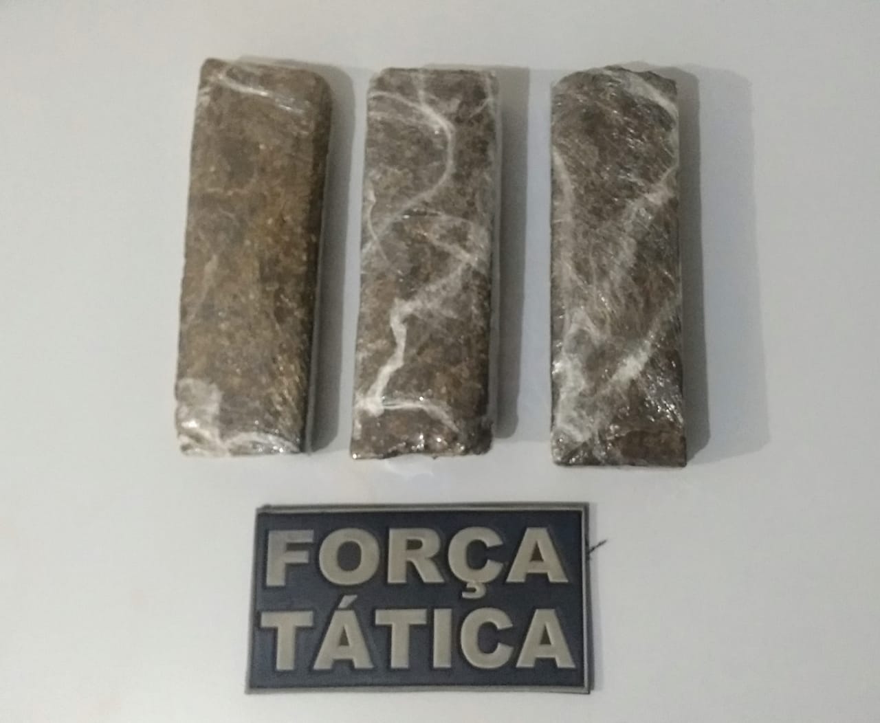 Durante busca pelo local foi localizada uma sacola contendo três tabletes de substancia análogos à maconha, bem como foi encontrado um artefato semelhante a uma granada, diante da periculosidade do artefato, foi acionada a equipe do Grupo de Bombas do BOPE para tomar medidas cabíveis, onde foi confirmada se tratar de uma granada, sendo retida do local de forma segura.