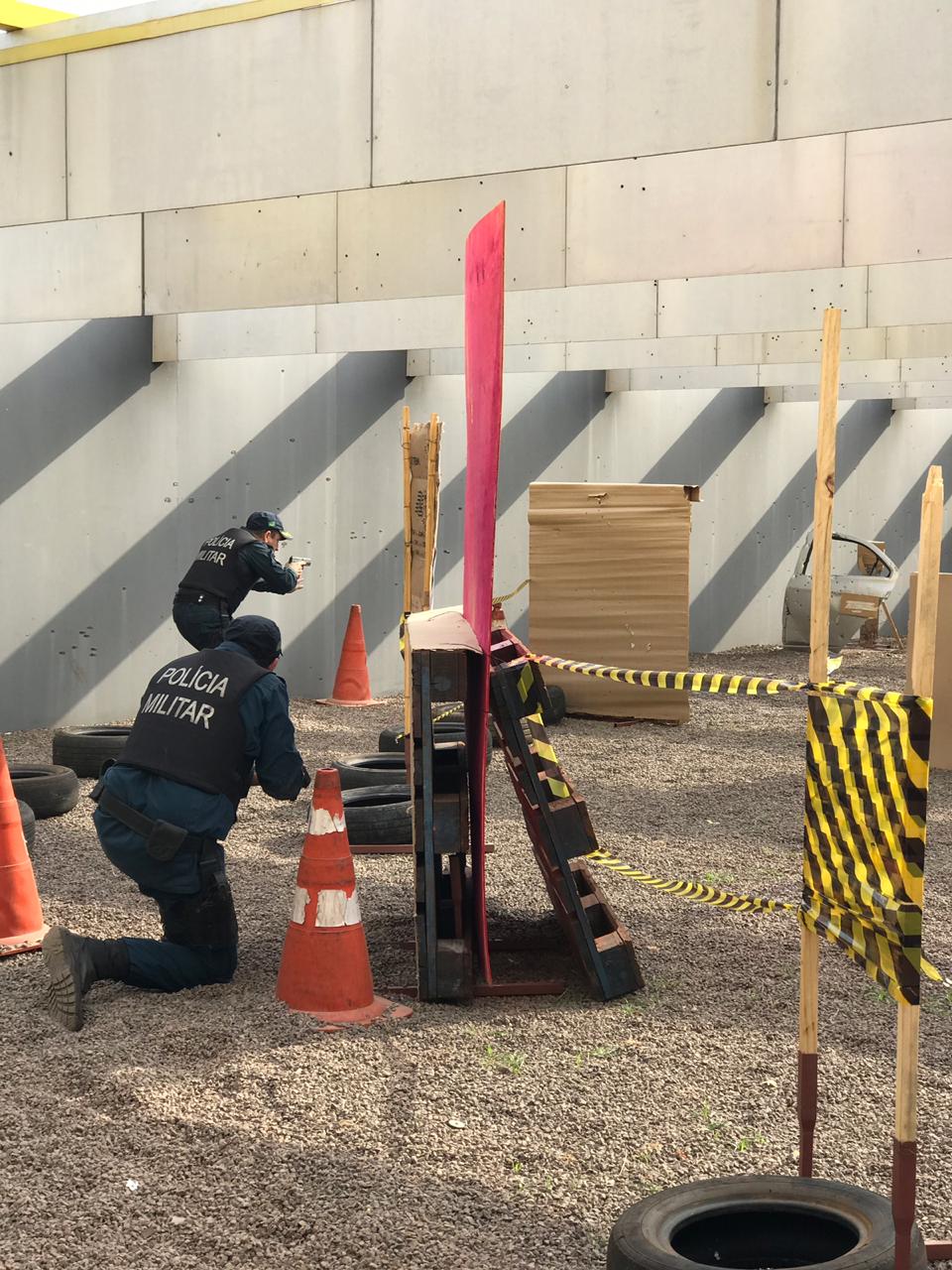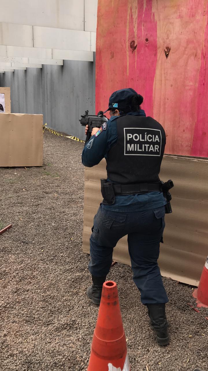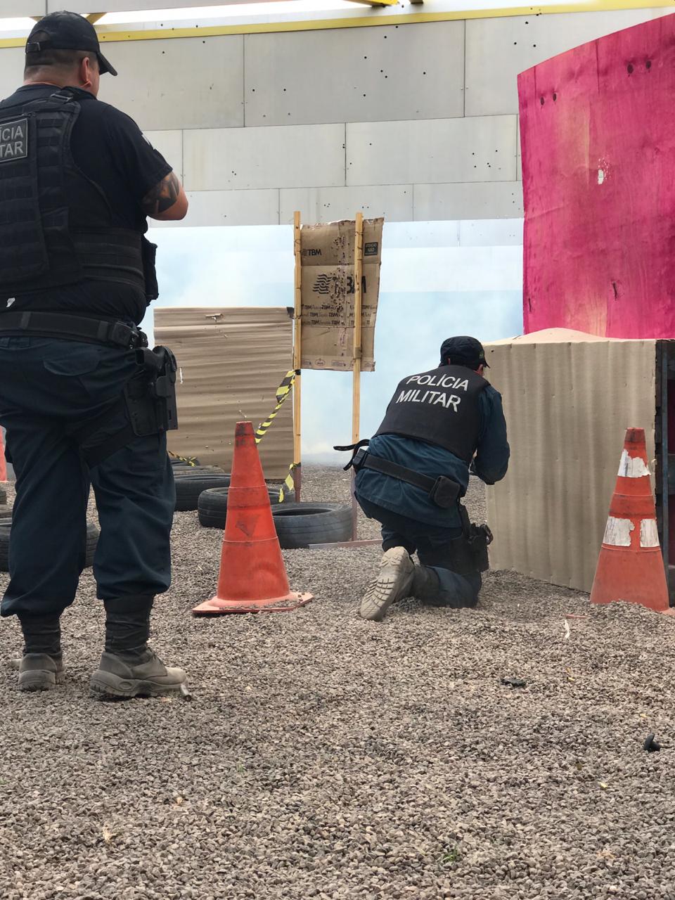 Durante as práticas de tiros, os participantes passaram por simulações utilizando pistola calibre .40, submetralhadora SMT calibre .40 e carabina IA2 calibre 5,56mm  variando as posições de tiro. Além do efetivo operacional e administrativo do 1º BPM, participaram das instruções policiais militares da Diretoria de Recrutamento, Seleção e Promoção (DRSP), quatro Policiais Civis lotados na Delegacia de Homicídios em Campo Grande, um perito da Polícia Federal e o Chefe de Segurança da Justiça do Trabalho.