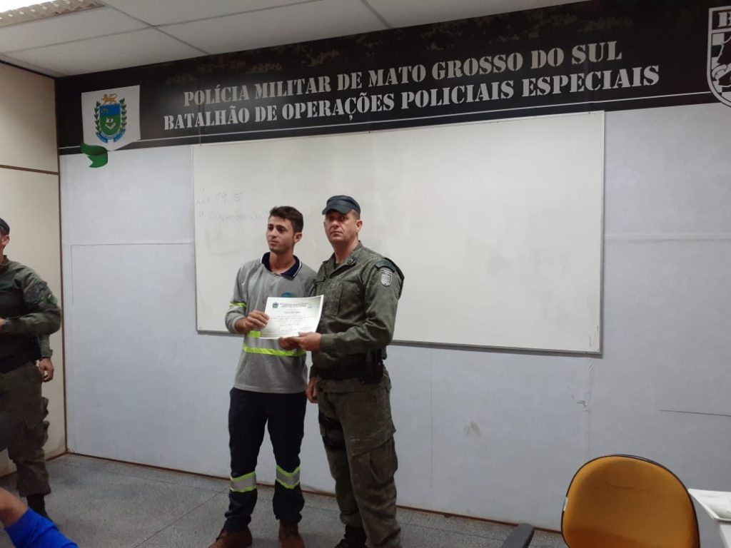 Campo Grande (MS) – Policiais militares do Batalhão de Operações Policiais Especiais (BOPE), por meio do Grupo de Cães Especiais (GCE), realizaram hoje treinamento para funcionários da empresa Águas Guariroba sobre o tema “Comportamento Canino e Técnicas de Prevenção de Ataque de Cães”. O curso visa capacitar os funcionários para identificar iminentes ataques de cães durante a prestação do serviço. As matérias abordadas durante o curso incluem psicologia canina, técnicas para redução de ataque canino, como se comportar diante ataque canino e aulas práticas com os cães do canil do BOPE.