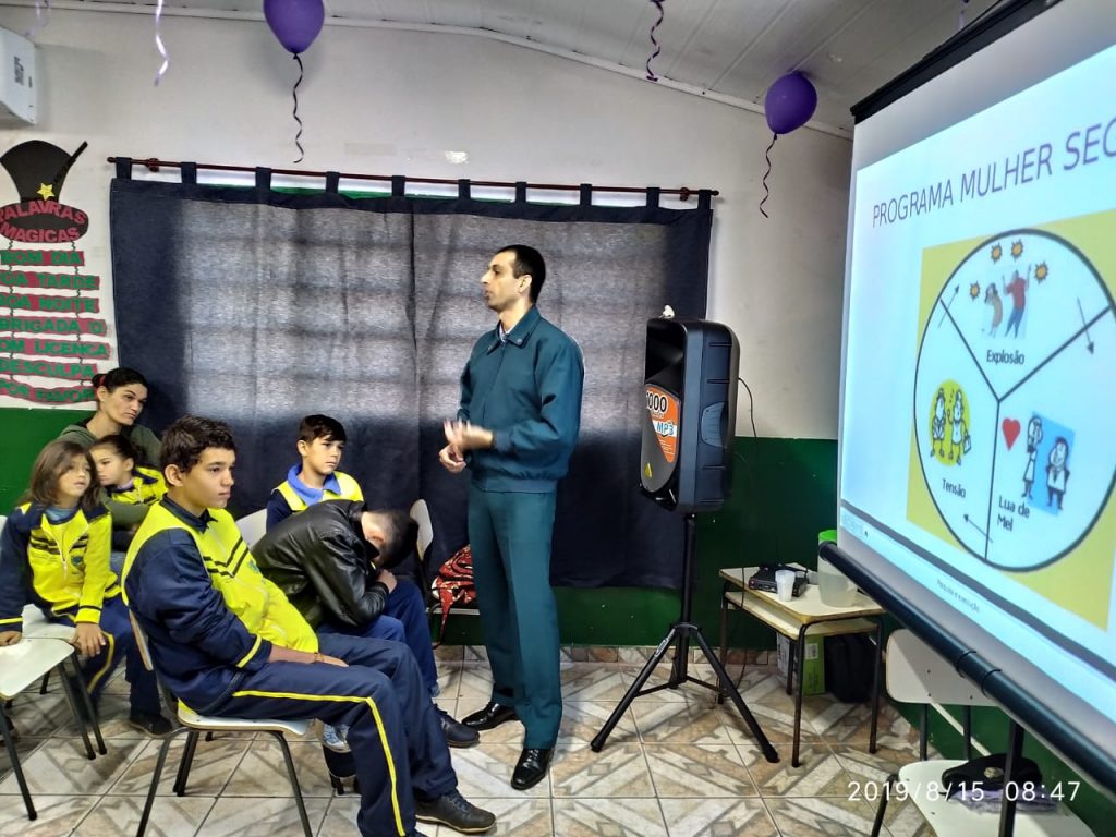 Ao longo do dia, a equipe técnica do PROMUSE ministrou palestras para os alunos e pais do Serviço de Convivência e Fortalecimento de Vínculos, alunos e professores da Escola de Educação Especial Renascer –APAE e para os participantes do grupo da Melhor Idade. Foram apresentadas aos participantes informações sobre o combate à violência doméstica e a Lei Maria da Penha, além de dados estatísticos sobre a prática da violência contra a mulher no Mato Grosso do Sul.