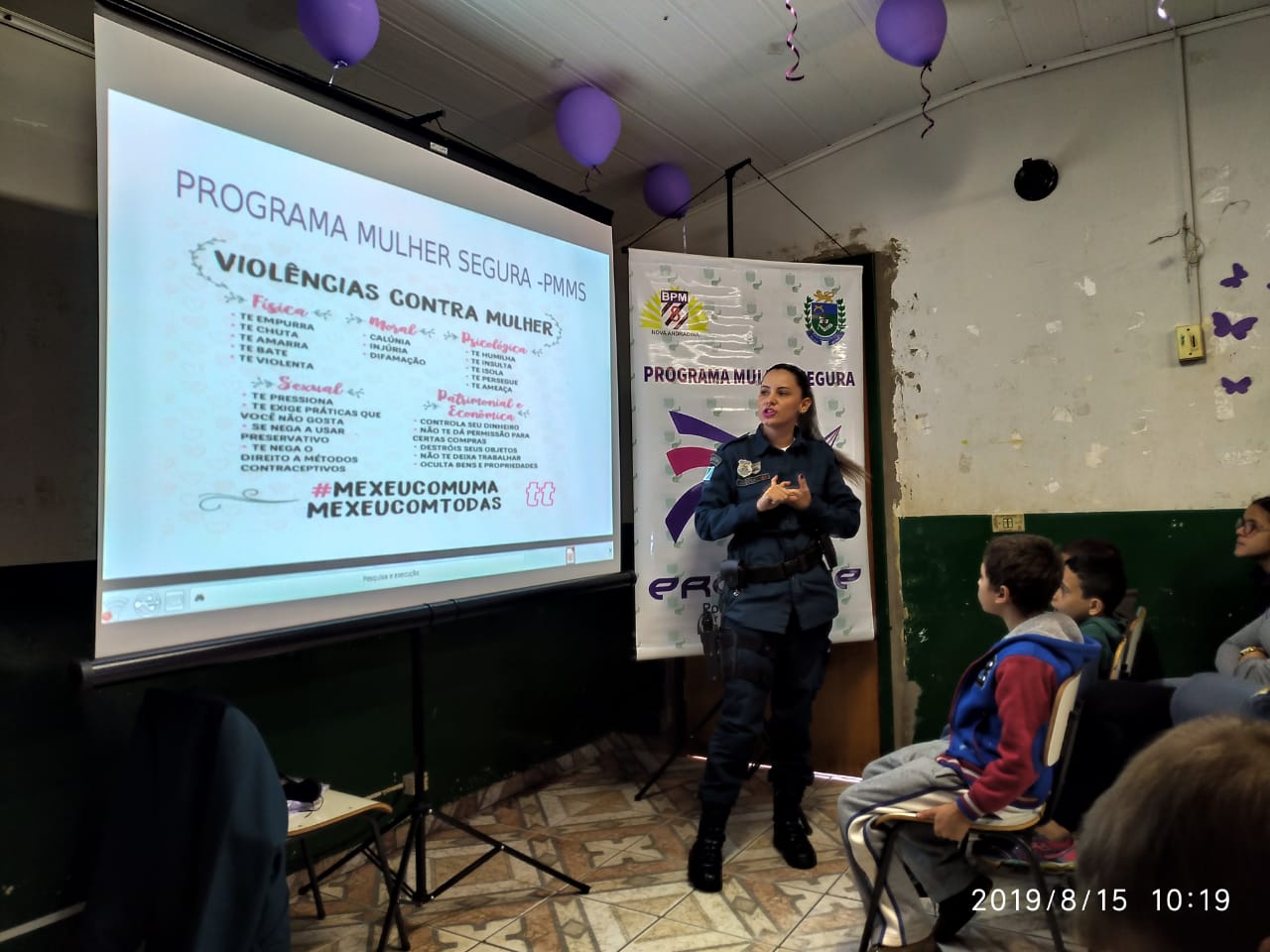 Nova Andradina (MS) – Policiais militares que atuam no Programa Mulher Segura em Nova Andradina, estiveram na quinta (15), à convite da Gerência Municipal de Assistência Social participando da Semana Municipal de Combate à Violência Doméstica, instituída em lei no ano de 2018 e que leva como imagem e nome “ Joelma Regiane Calegari”, que foi brutalmente assassinada pelo marido em Novo Horizonte do Sul.