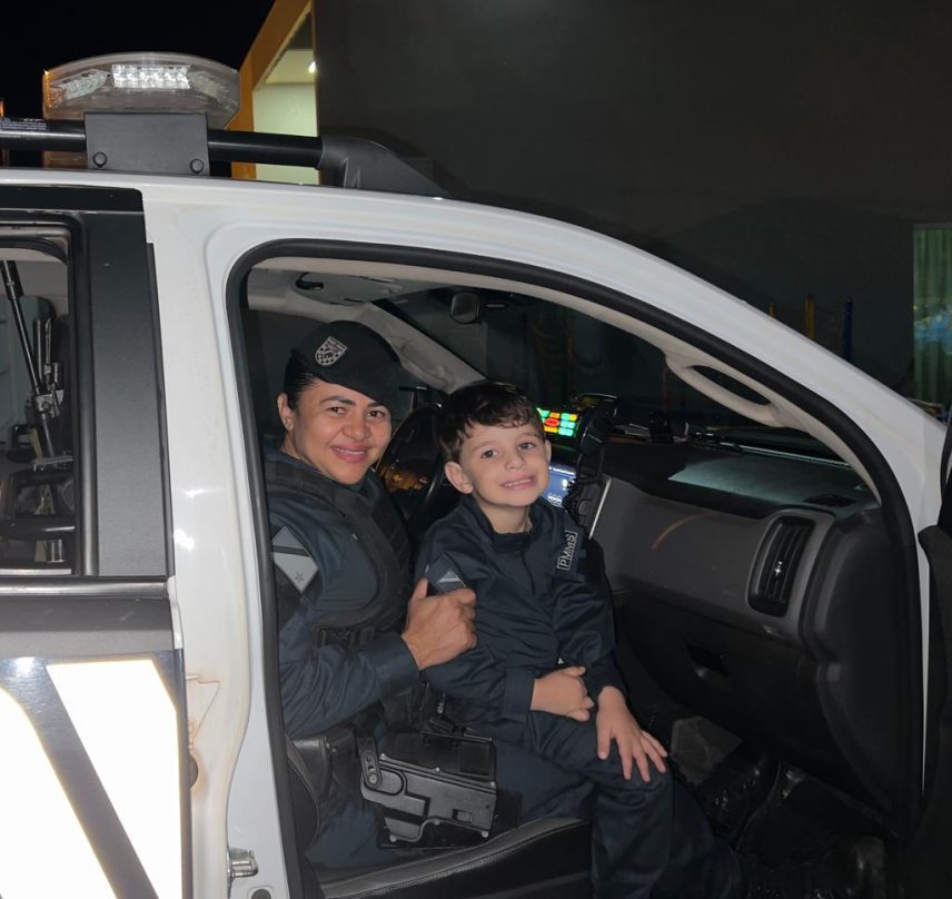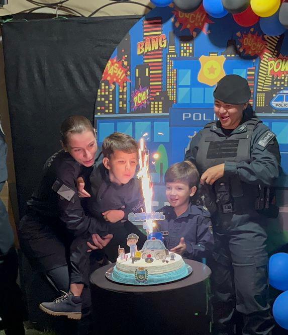 A Guarnição PM atendeu o chamado da Janaina, a qual solicitou a presença dos policiais no aniversário do seu filho. A mãe do aniversariante relatou que Gabriel é fã da Polícia Militar e que sonha em fazer parte da corporação quando crescer.