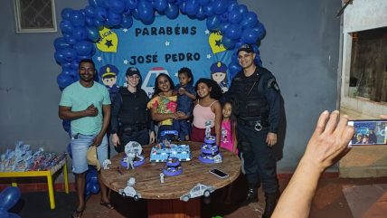 Campo Grande (MS) – Policiais Militares da 10ª CIPM – Companhia Independente de Polícia Militar, na noite de sexta-feira (25), participaram do aniversário de José Pedro, que é um admirador da Polícia Militar.