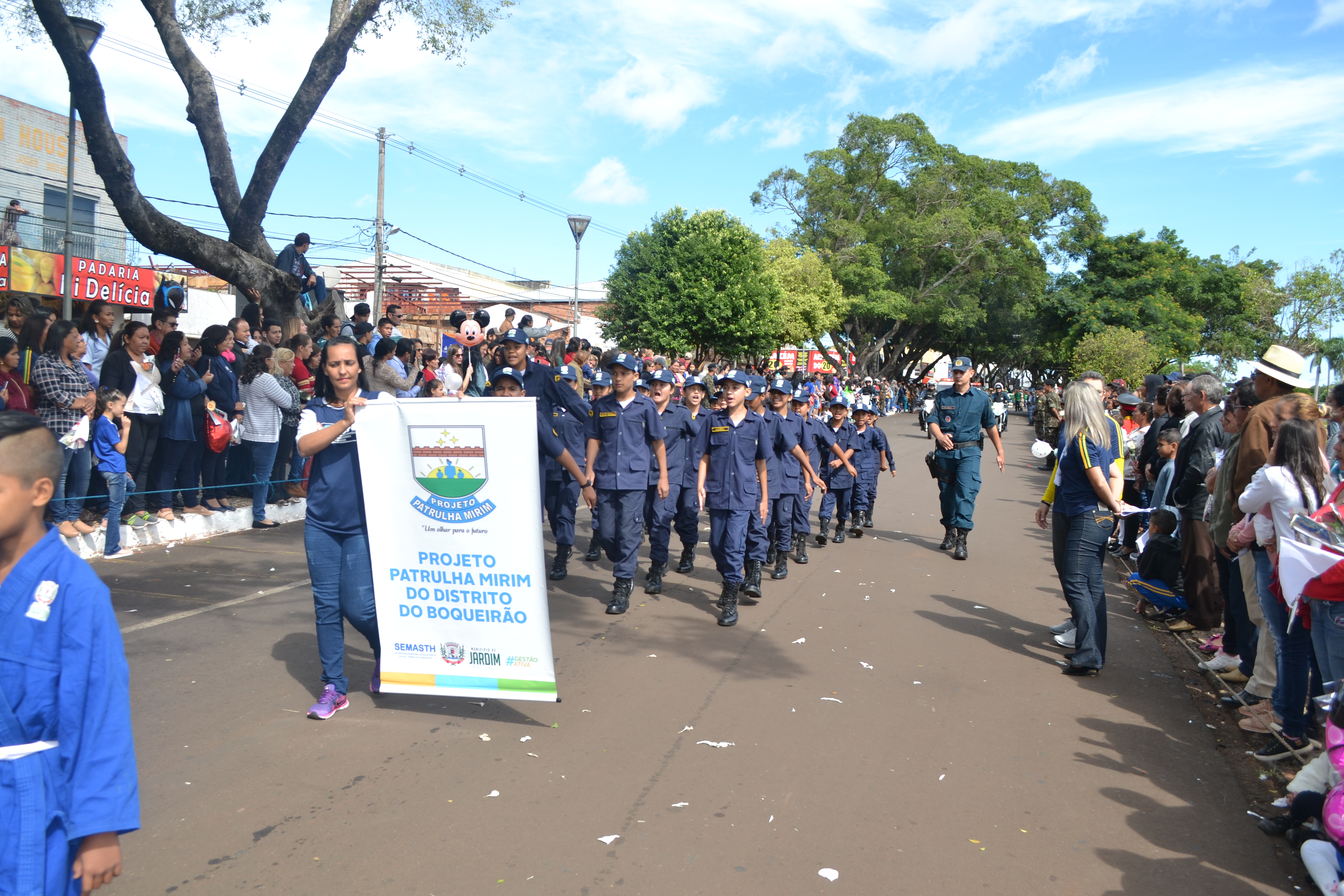 Além de garantir a segurança na cidade e no local do evento, a Polícia Militar participou do desfile com a apresentação de suas viaturas (quatro e duas rodas) e, ainda, com o desfile dos alunos do Projeto Patrulha Mirim de Jardim, sob o comando do instrutor cabo PM Carlos Martins Alvarenga, dos alunos do Projeto Patrulha Mirim do distrito de Boqueirão, sob o comando do instrutor cabo PM Thiago Henrique Farias Peixoto e, também, dos alunos do Projeto ReAÇÃO – Integração e Cidadania, de Jardim, sob o comando do cabo PM André Barbosa Rios.