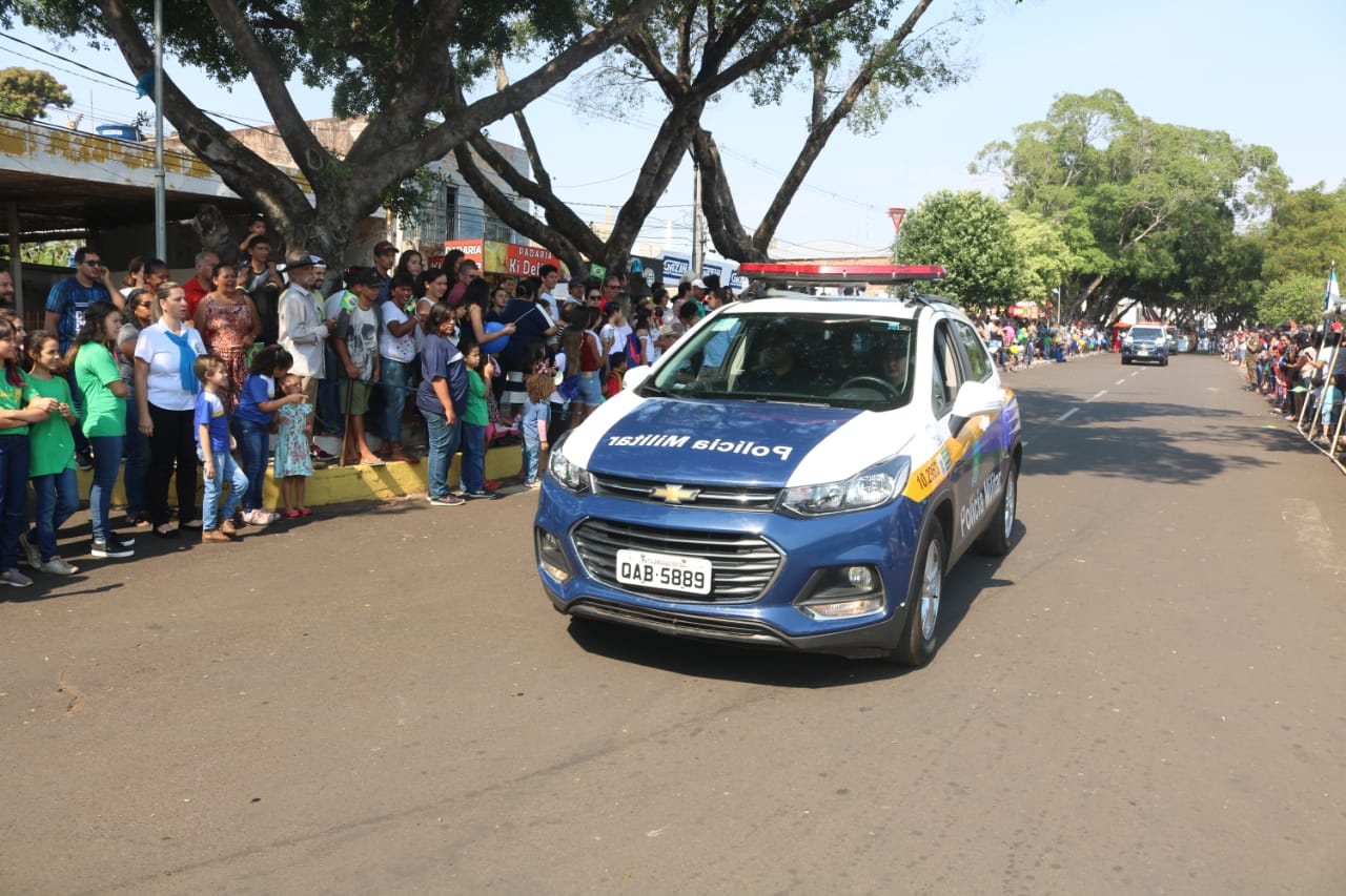 Durante todo o evento os Policiais Militares, além de garantir a segurança da cidade e do evento, desfilaram em viaturas operacionais (quatro e duas rodas).