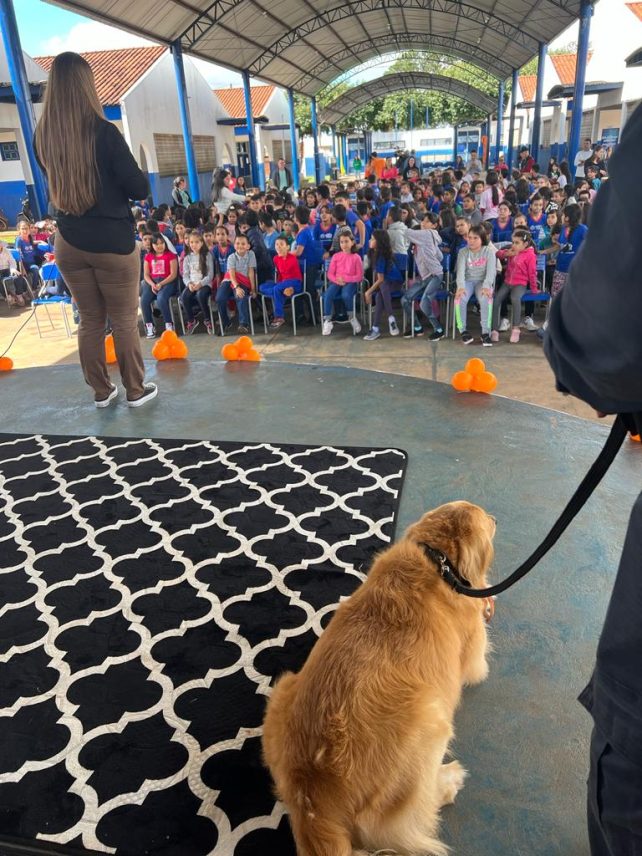 Ponta Porã (MS) – Na manhã desta quinta-feira (27/04) o Canil do 4º BPM participou de um evento organizado pela escola Municipal Manoel Martins em Ponta Porã, que promovia o mês de prevenção contra a crueldade animal. O evento contou com a participação do Subcomandante do 4º BPM, Major PM Valdir,  além dos Policiais que compõe a equipe  do canil, e do cão de faro Thor, que fez o maior sucesso junto aos alunos da escola.