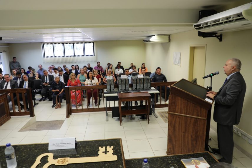 Com a presença do Presidente do Tribunal de Justiça de Mato Grosso do Sul Desembargador Sérgio Fernandes Martins, do Comandante do Pelotão da PM em Pedro Gomes, Tenente Manoel Moreira de Oliveira e demais autoridades que puderam participar durante a tarde da posse do Juiz Matheus da Silva Rebutini, além da entrega de melhorias na comarca.