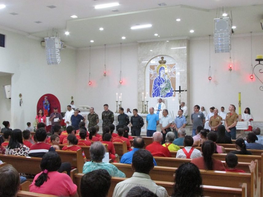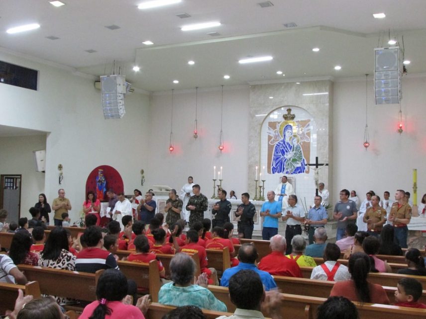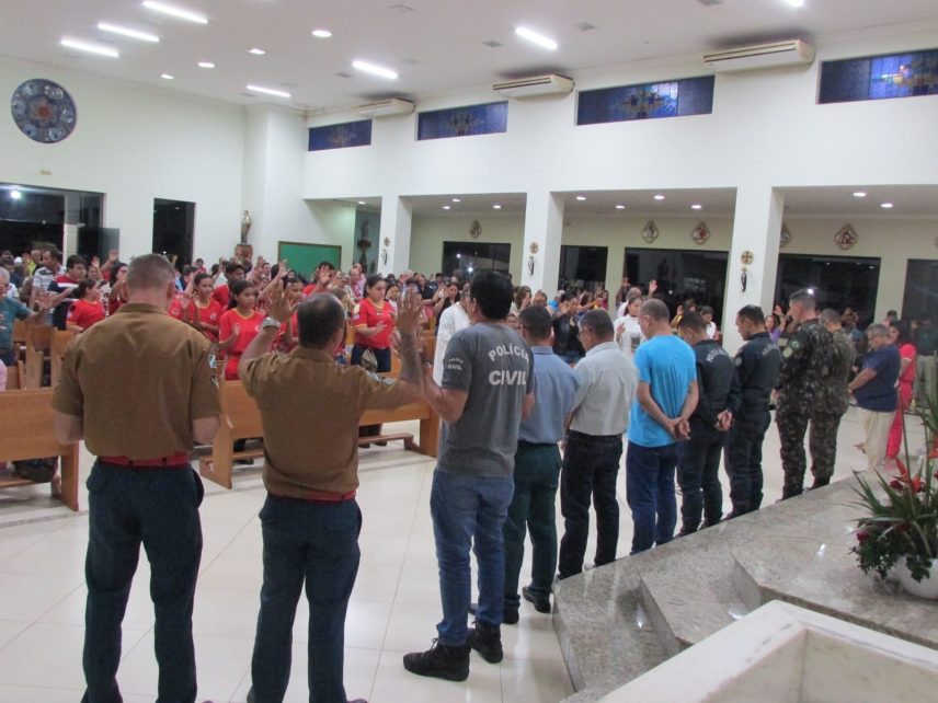 Coxim (MS): A Polícia Militar participou na noite do dia (13/05), da missa em homenagem aos militares na Festa da Igreja Perpétuo Socorro em Coxim.