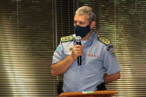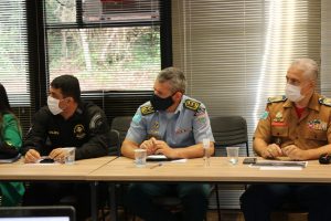 A reunião contou com a presença do Secretário de Estado de Justiça e Segurança Pública, Antônio Carlos Videira, do Secretário Adjunto da Sejusp, Coronel PM Ary Carlos Barbosa, do Subcomandante-Geral da PMMS, Coronel Renato Dos Anjos Garnes, neste ato representando o Comandante-Geral da PMMS, Coronel Marcos Paulo Gimenez, diretor do Departamento de Operações de Fronteiras – DOF, Coronel PM Wagner Ferreira da Silva, e outros chefes de órgãos de segurança do Estado.