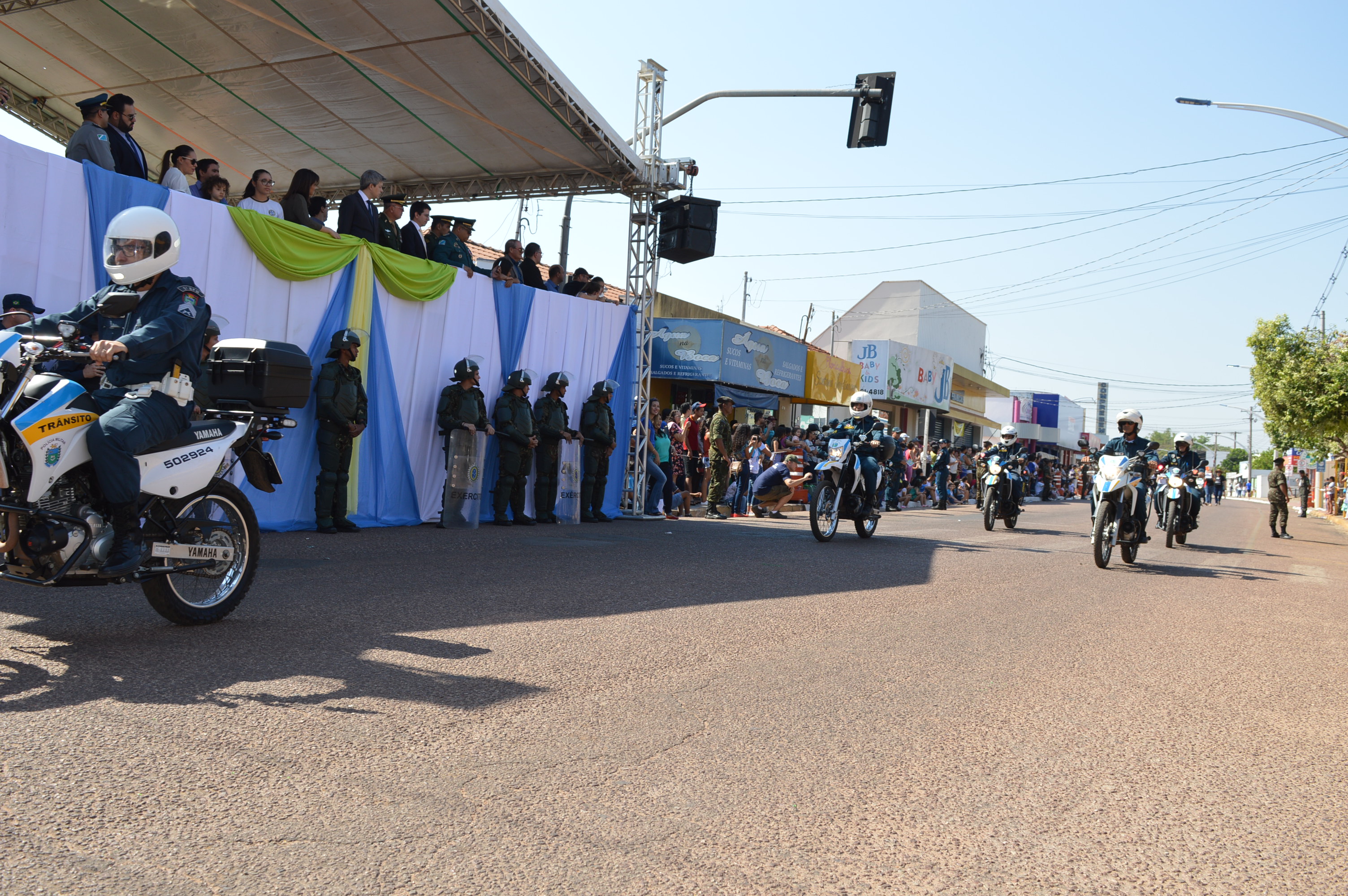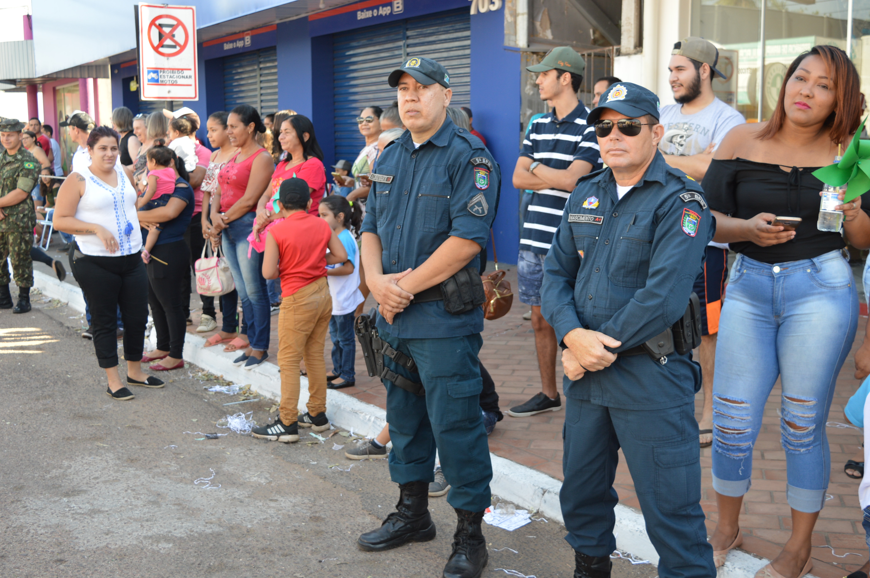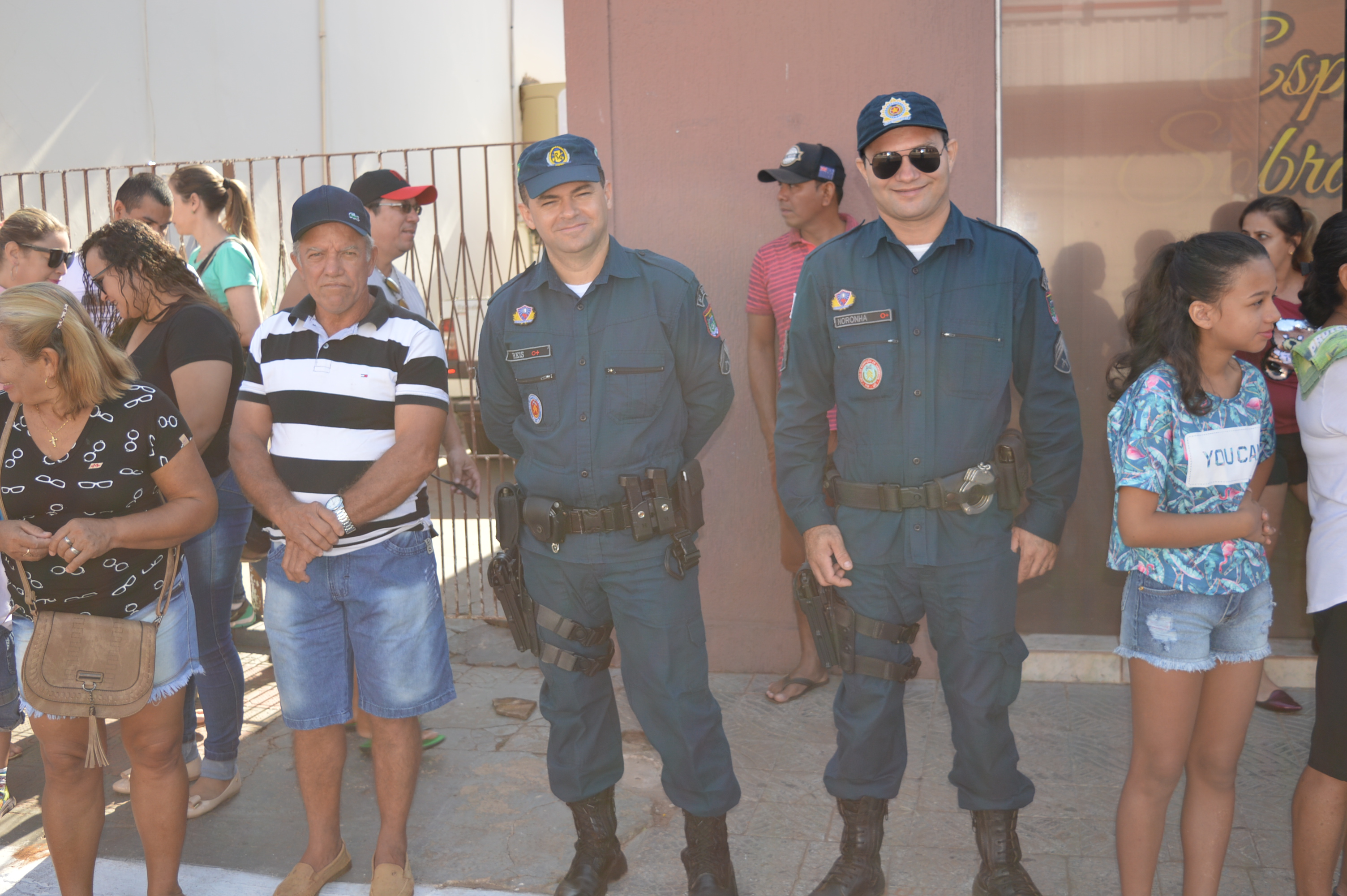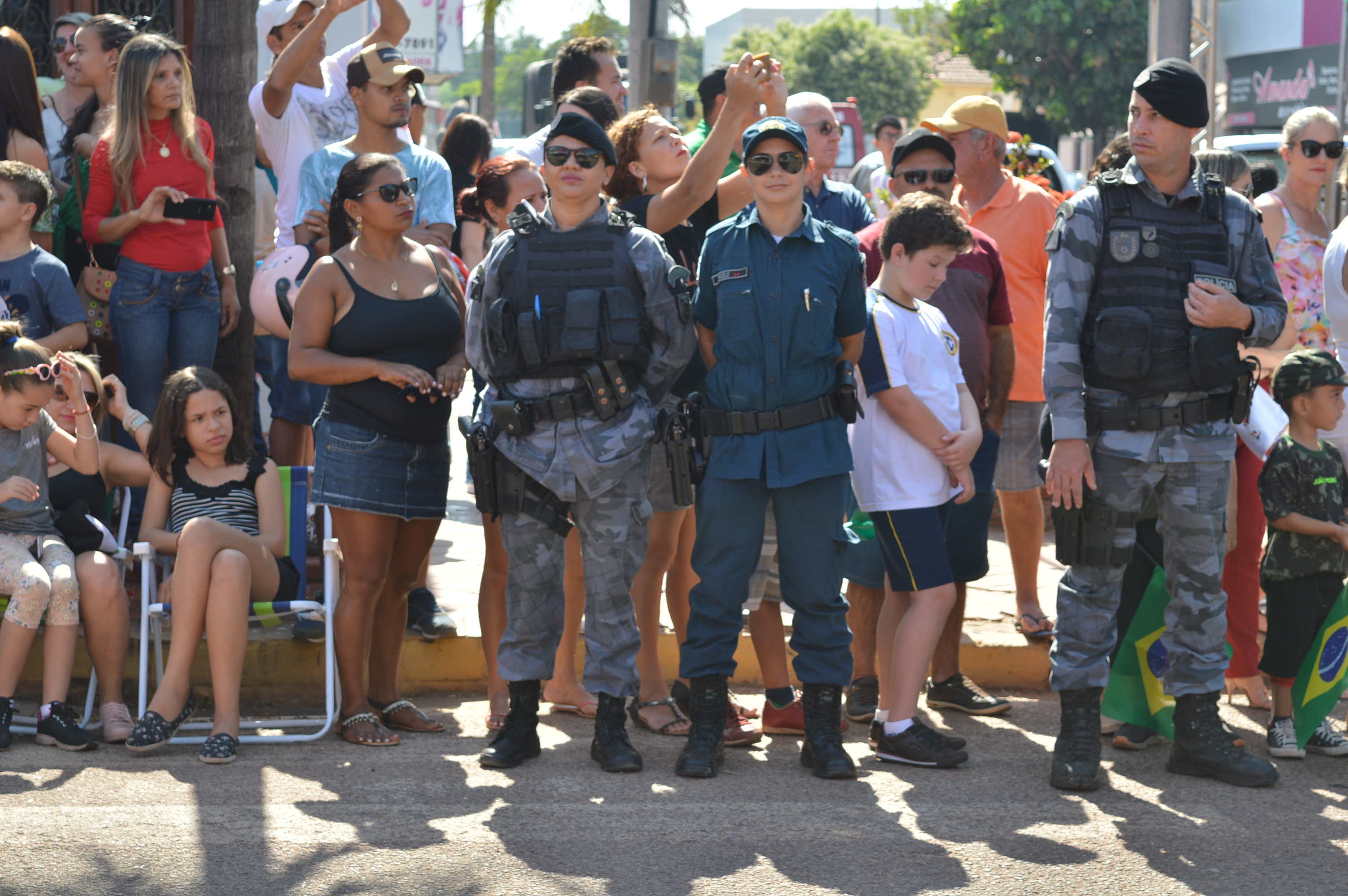Desfilaram ao público presente, os policiais militares do Grupamento de Trânsito, Força Tática, Radio Patrulha, Canil e Proerd, além dos policiais que realizaram a segurança do evento dos participantes do ato cívico.