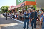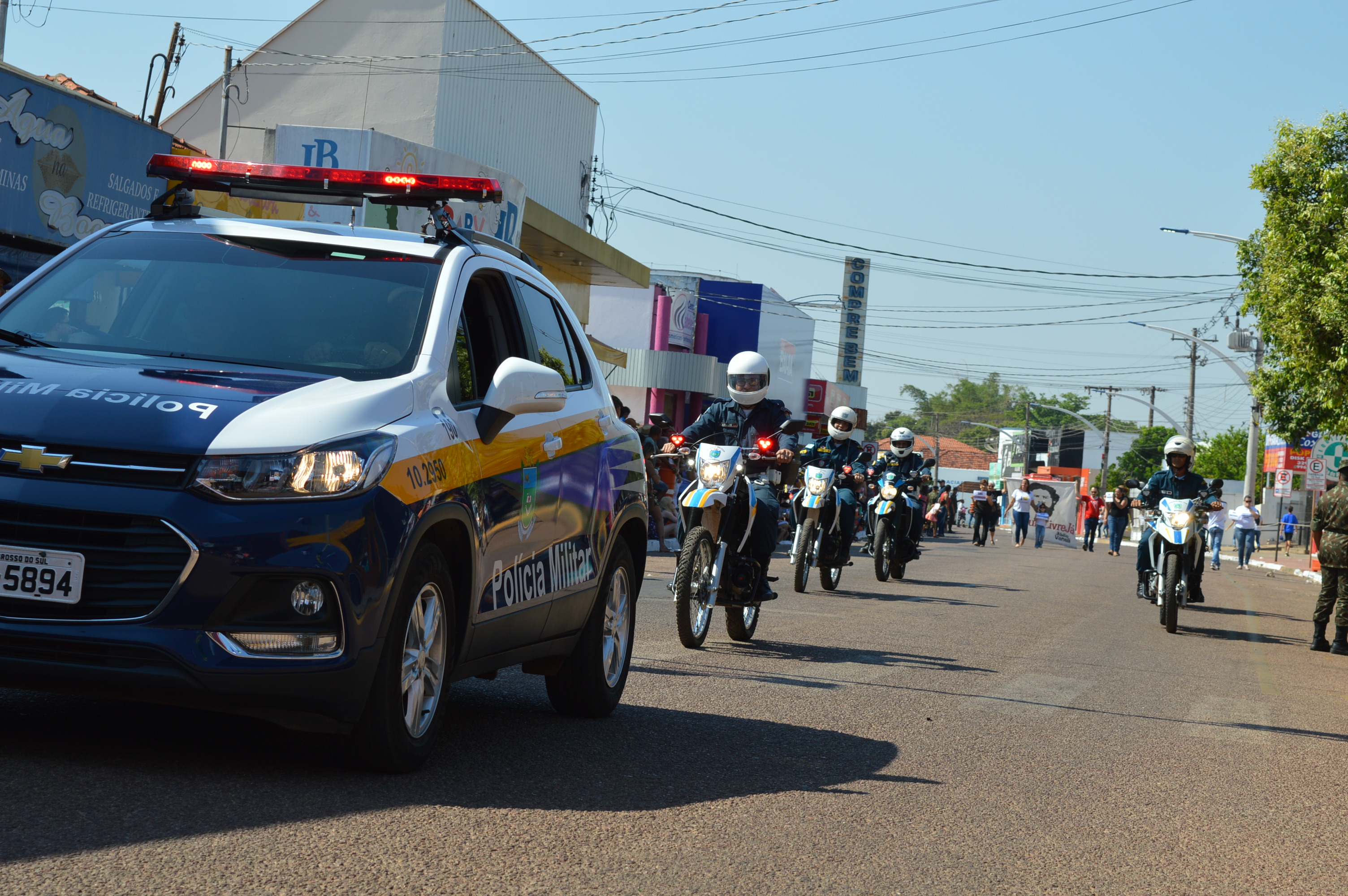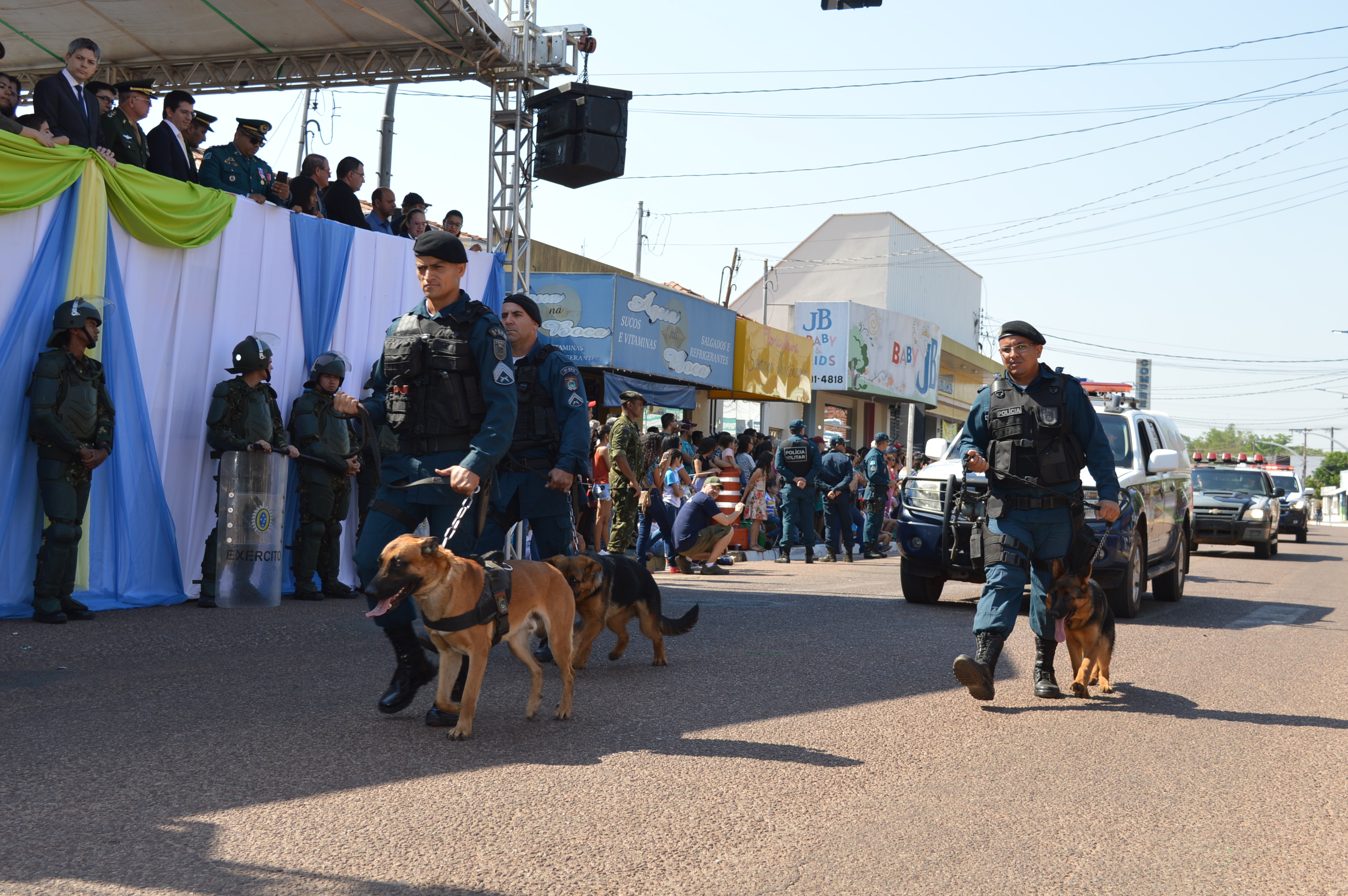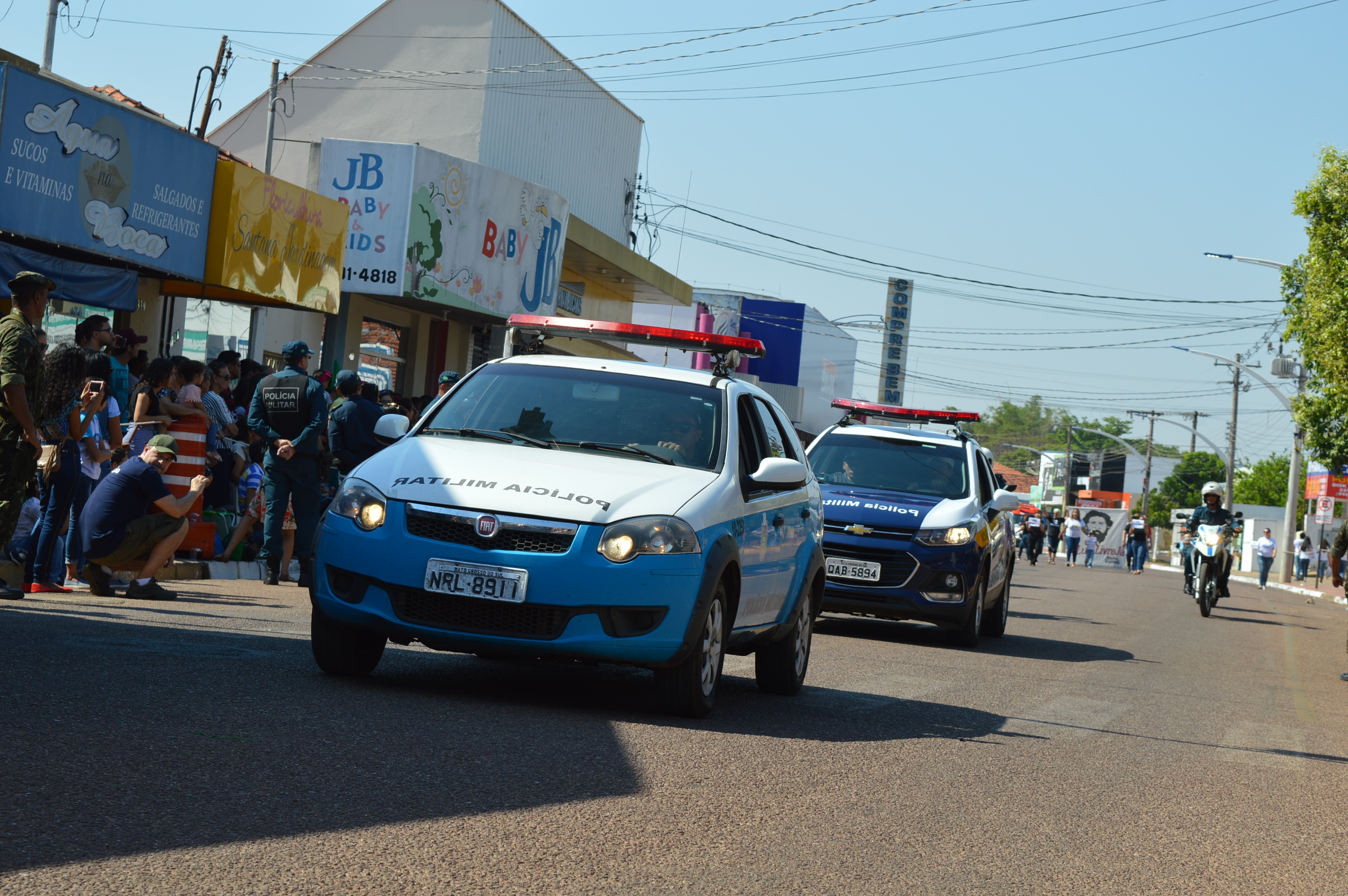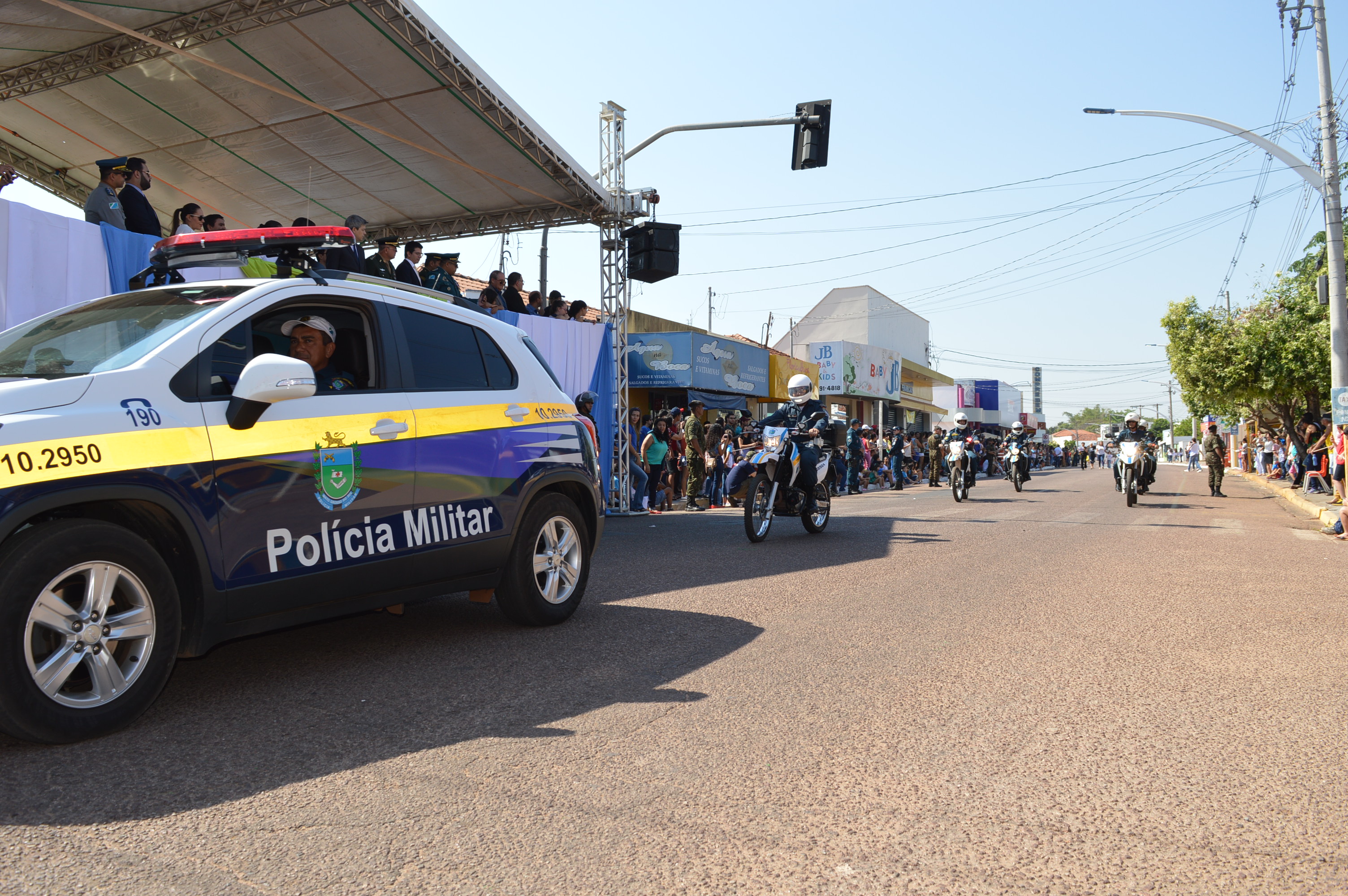 Desfilaram ao público presente, os policiais militares do Grupamento de Trânsito, Força Tática, Radio Patrulha, Canil e Proerd, além dos policiais que realizaram a segurança do evento dos participantes do ato cívico.