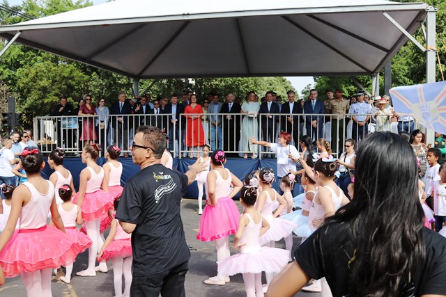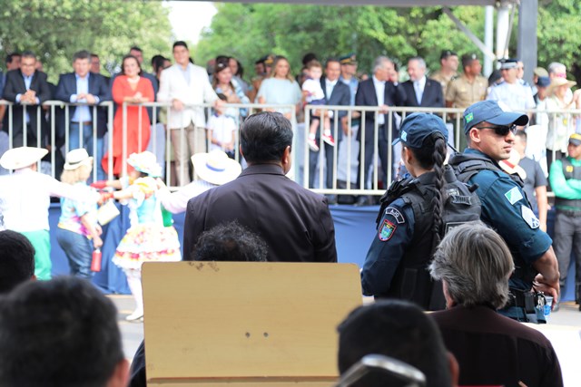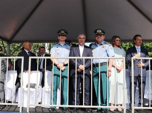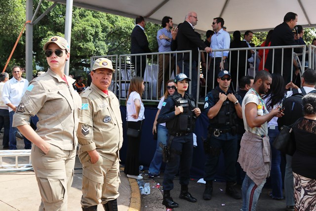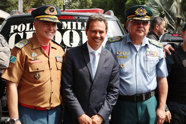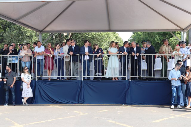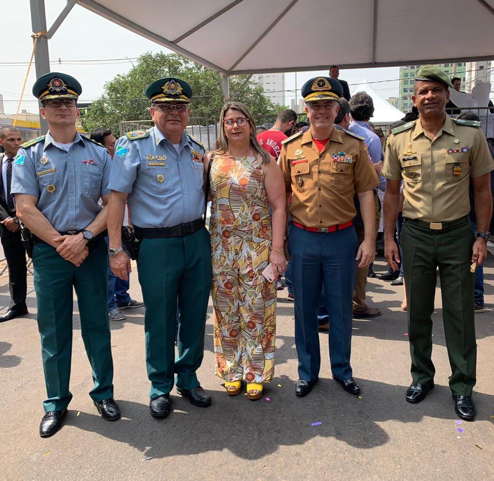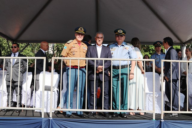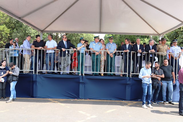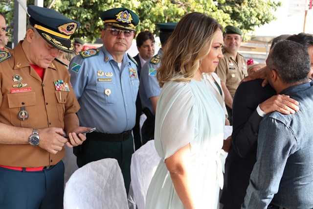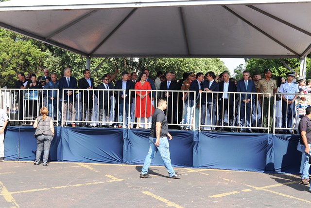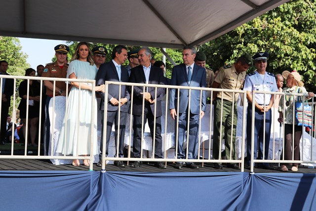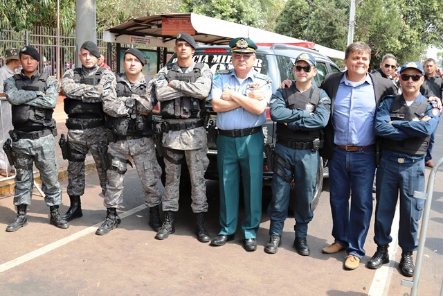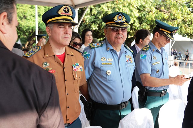 O Comandante-Geral da PMMS, Coronel PM Waldir Ribeiro Acosta juntamente com outros oficiais permaneceu do início ao fim da solenidade e parabenizou os policiais militares que desfilaram e participaram da segurança do evento.