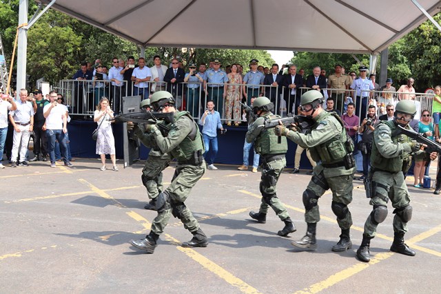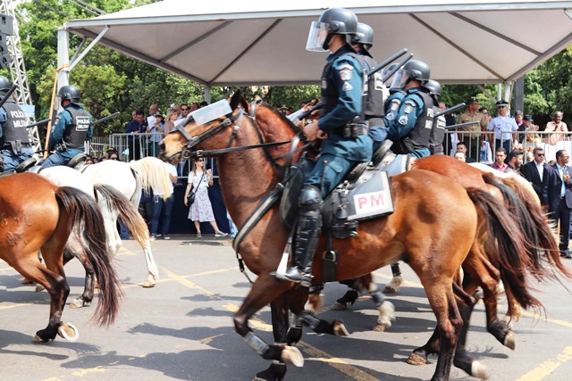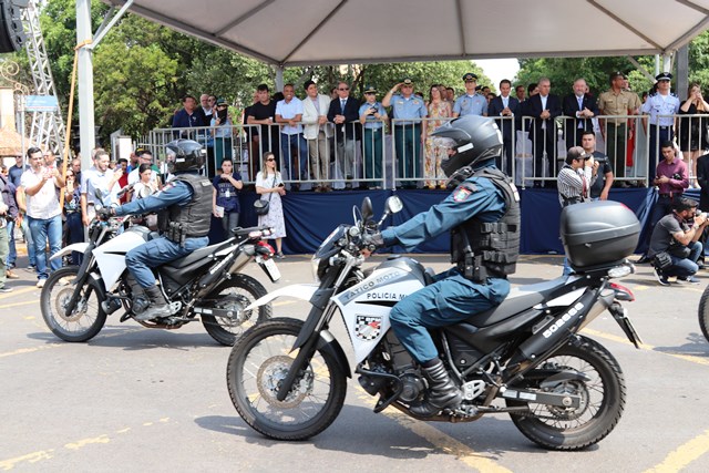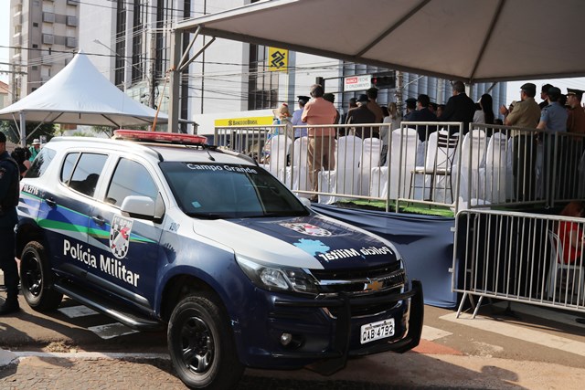 Campo Grande, MS — A Polícia Militar de Mato Grosso do Sul participou na manhã de hoje (26/08) do Desfile Cívico em homenagem ao aniversário de Campo Grande, que completou 120 anos. Diversas autoridades assistiram ao desfile, dentre elas o Governador Reinaldo Azambuja e o Prefeito Marquinho Trad.