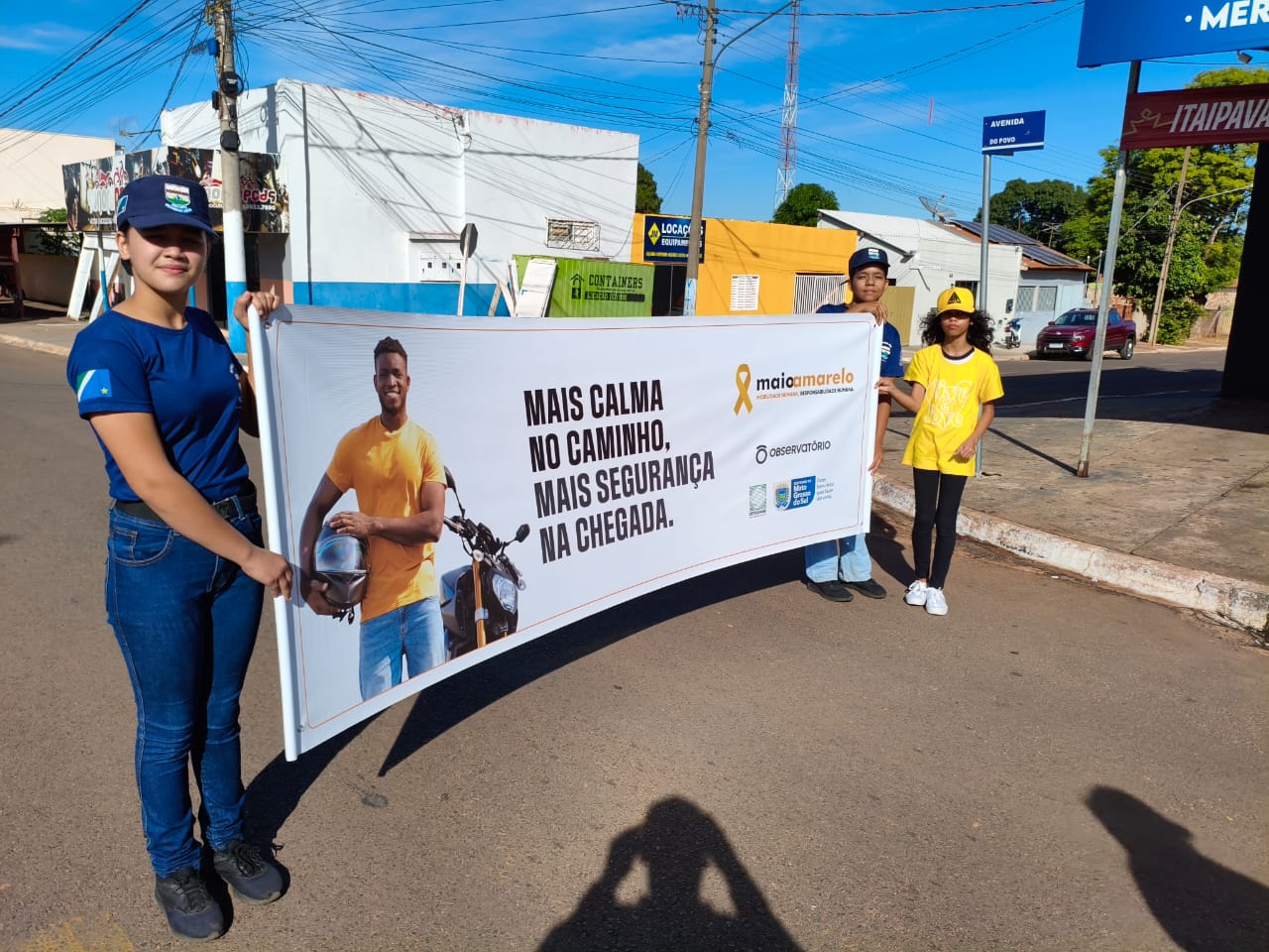Coxim (MS): Na manhã e da tarde desta terça-feira (21), a Polícia Militar, e o Departamento de Transporte e Trânsito (Detrat) realizaram uma panfletagem educativa em alusão ao movimento Maio Amarelo em Sonora.