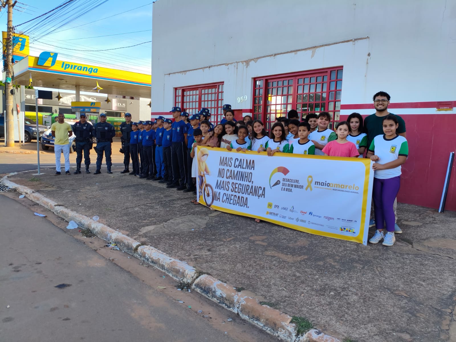 A campanha contou com a participação de alunos do 5º ano da Escola Municipal Luigi Gazzolo e integrantes da Patrulha Mirim, coordenados pelo Sargento Robison Lima da Cruz.