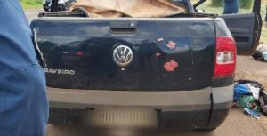 No interior da pick-up estavam um jovem de 18 anos e dois adolescentes, um deles que estava na direção. Após checagem, foi constatado que o veículo VW – Saveiro de cor preta, era produto de um furto realizado na cidade de Sidrolândia- MS.