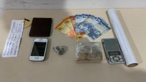 Por volta das 18h40, a equipe de Força Tática abordou um homem de 26 anos no bairro Vila Piloto. Pouco antes, o suspeito tentou se desfazer de 01 porção de maconha e um celular, que segundo o próprio suspeito haviam mensagens comercializando drogas. Em sua residência no bairro JK foram apreendidos dinheiro e anotações do tráfico, 01 tablete de maconha, 01 balança de precisão e papel celofane.