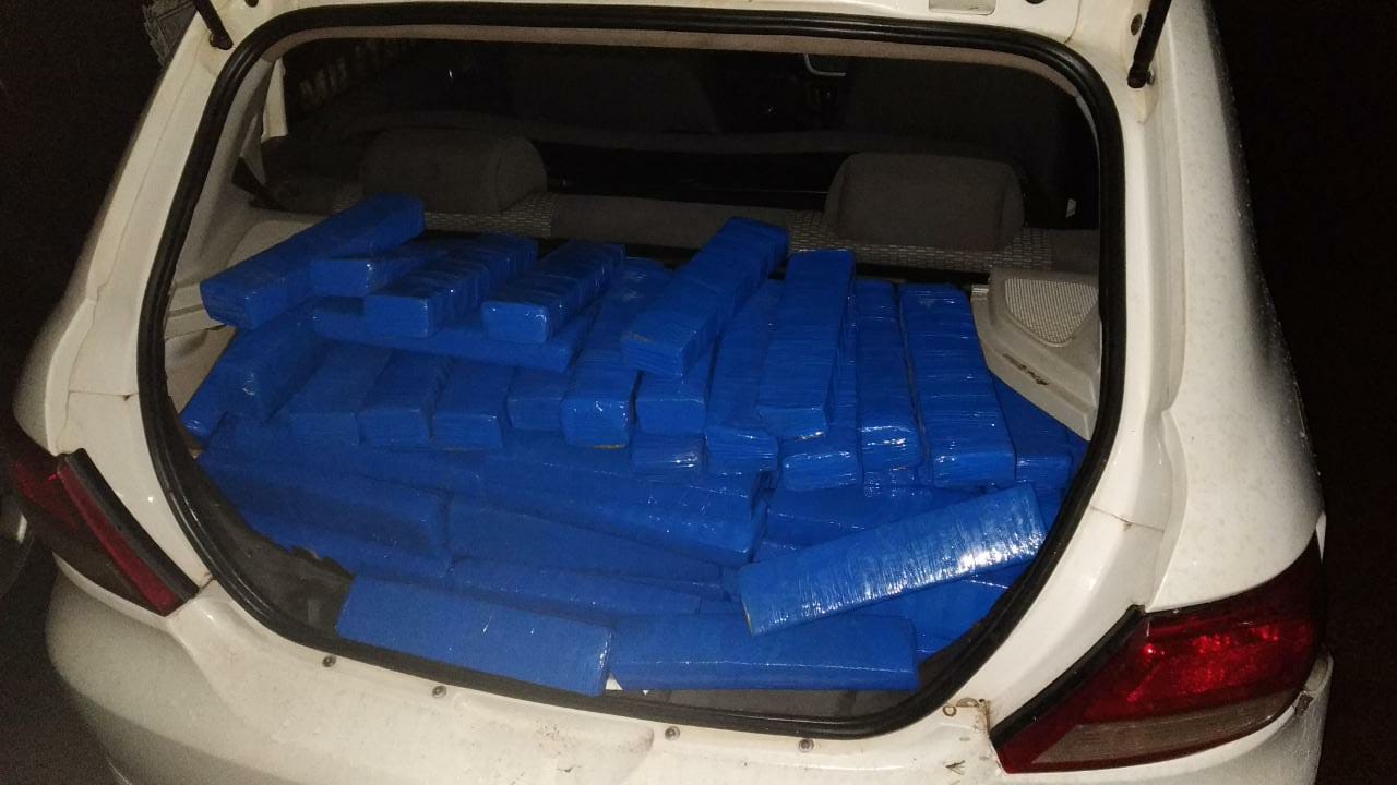Durante a busca veicular, foram localizados em seu porta-malas, diversos tabletes de substância análogas à maconha. O autor relatou à guarnição que o veículo se encontrava em um posto de gasolina na cidade de Ponta Porã/MS, já com os entorpecentes no seu interior. Diante do exposto, foi solicitado o apoio da equipe de Força Tática de Jardim, para encaminhar o veículo, o autor e os materiais ilícitos apreendidos, até o 1º Distrito Policial da cidade de Jardim, sendo que, ao chegar à Delegacia, a guarnição, usando do tirocínio policial, notou um veículo Golf, de cor prata, da cidade de Campo Grande/MS, em velocidade reduzida, analisando toda a situação no Distrito Policial. Foi quando a equipe de Força Tática realizou acompanhamento tático ao veículo suspeito, sendo o referido veículo abordado em Guia Lopes da Laguna/MS, com o apoio da equipe policial do Distrito de Boqueirão. No interior do veículo, havia dois homens, um de 21 e outro de 31 anos, os quais se mostraram bastante nervosos, e dando informações desconexas, sendo que posteriormente admitiram estar fazendo a função de batedor (escolta) do veículo VW Gol, e que receberiam o valor de 6 (seis) mil reais para fazerem o serviço até a cidade de Campo Grande/MS.