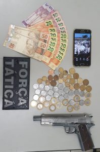 Diante dos fatos, a Polícia Militar intensificou rondas por toda a região, ocorrendo em seguida uma denúncia pelo 190 de que um veiculo HB-20 havia sido abandonado na avenida Mato Grosso. O 9ºBatalhão de Polícia Militar atento ao ocorrido em sua região iniciou buscas e diligências, após coletarem as características dos autores com a vítima. Com base nas informações a equipe Força tática em rondas na Avenida Santa Luiza no bairro Carandá Bosque identificou dois indivíduos em atitude suspeita, que ao avistarem a viatura jogaram um celular no chão e uma réplica de arma de fogo, feito a abordagem e busca pessoal a equipe encontrou no bolso de um deles um pacote de plástico contendo cédulas em dinheiro, sendo um dos assaltantes identificado como menor de idade.