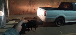 Nesta segunda-feira, por volta das 00h10min, uma guarnição da Força Tática do 2º Batalhão foi solicitada a deslocar na Rua Vinte e Seis, no bairro Vila Piloto, onde segundo relatos da vítima seu namorado após desentendimento teria lhe ameaçado com uma arma de fogo, tipo revolver, apontando para sua cabeça e puxando o gatilho por duas vezes, porém a arma não teria disparado. Diante as informações os policiais militares intensificaram diligências com vistas a prisão do autor, sendo este localizado no cruzamento da Rua Trinta e Seis e ao ser dado voz de abordagem os militares visualizaram quando o abordado jogou algo ao solo, sendo localizado durante busca no perímetro 01 simulacro de arma de fogo, do tipo revólver, de plástico, na cor preta.