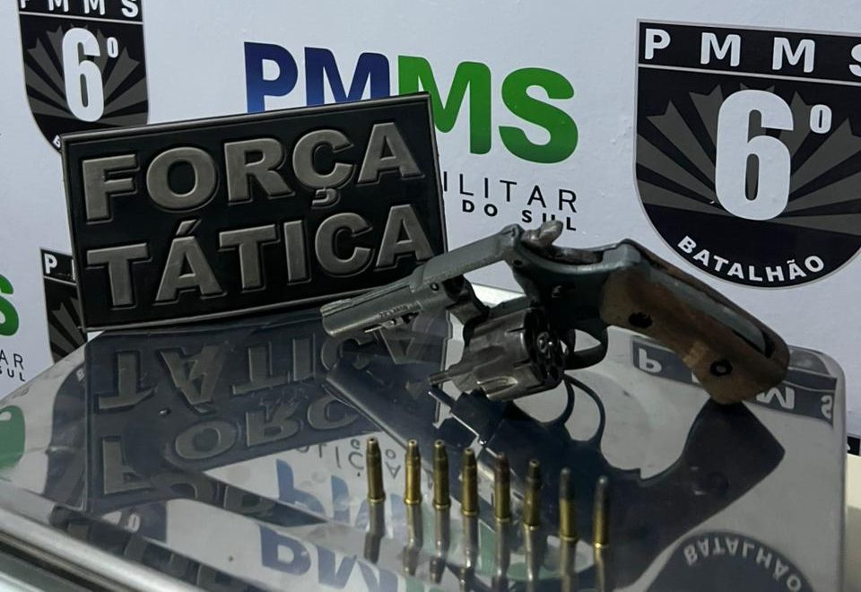 Enquanto a Força Tática detinha o suspeito, a equipe de rádio patrulha de trânsito realizou a varredura no local onde o objeto havia sido dispensado. Na busca, os militares localizaram um revólver da marca Galand, calibre .22, carregado com oito munições intactas. Diante dos fatos, o autor recebeu voz de prisão e foi encaminhado à Primeira Delegacia de Polícia Civil para a adoção das providências legais cabíveis.
