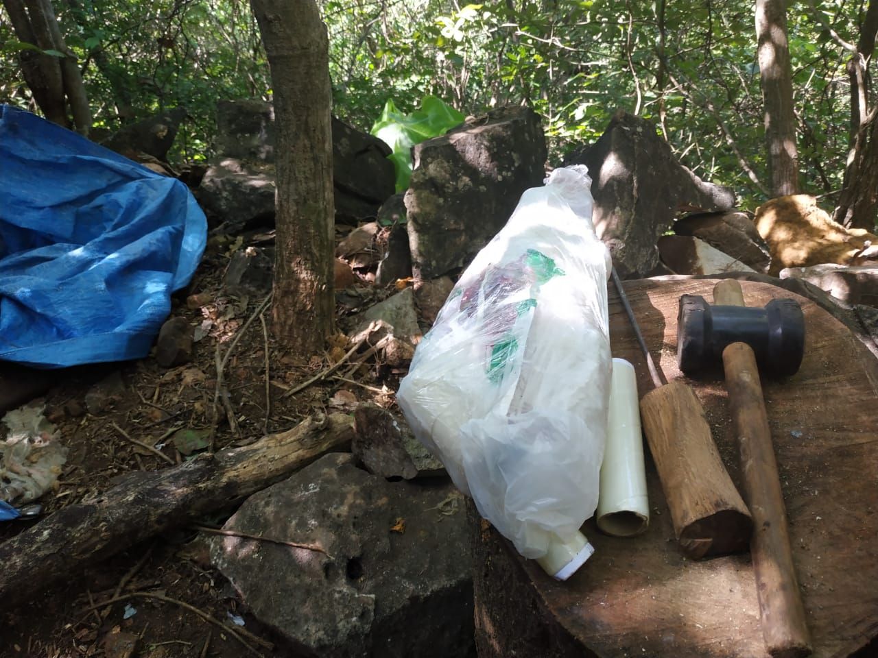 Com o apoio das equipes de rádio patrulha e patrulha comunitária, os policiais deslocaram até a residência do autor (32), onde após buscas foi localizado atrás do imóvel, em uma mata, uma porção de maconha, um pé de Canabis Sativa (maconha) e material para confecção de trouxinhas para comercialização.