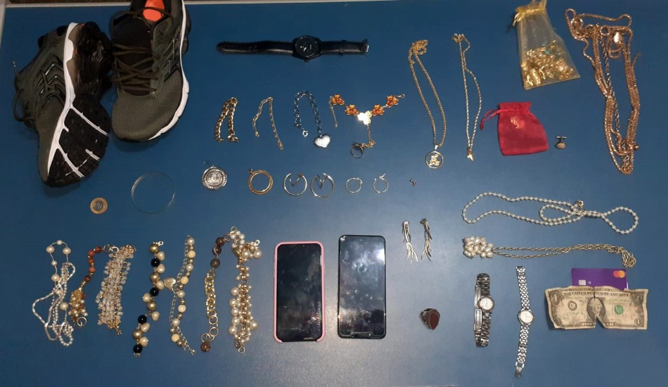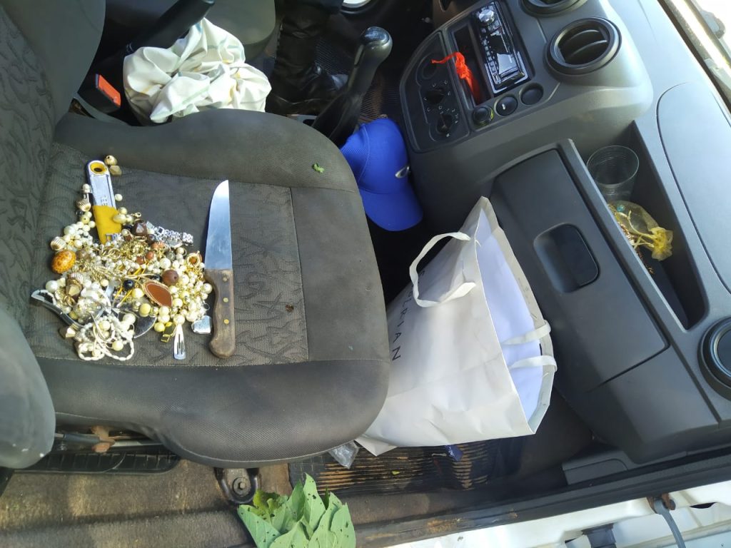 No veículo Ford Ka os policiais localizaram joias e semi-joias furtadas de residências, além de ferramentas utilizadas para arrombar e entrar nos imóveis.