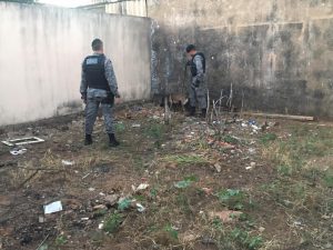 Diante das denúncias e da fundada suspeita foi solicitado o apoio do Canil da Polícia Militar e durante a vistoria no terreno da residência inabitada, a K9 Mara teve súbita mudança comportamental aos fundos do imóvel. No local havia vários escombros, porém o comportamento do semovente canino indicou que havia substância ilícita em um determinado ponto do quintal, o qual foi escavo e encontrado um papelote contendo sem eu interior 40 (quarenta) porções análogas a crack pesando aproximadamente 0,12 gramas.