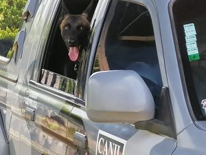 Para dar prosseguimento às diligências, devido o local ser bastante grande e cheio de material reciclados, foi solicitado, pela Força Tática, apoio da equipe do Canil da PM, para com a expertise da cadela K9 Mara, proceder de forma mais eficiente às buscas por drogas.