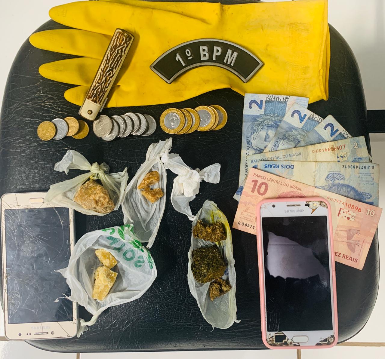 A equipe policial executava o policiamento ostensivo e preventivo em pontos sensíveis da região, quando se depararam com dois indivíduos na Antiga Rodoviária, altura das Ruas Barão do Rio Branco com Vasconcelos Fernandes. A equipe percebeu que os detidos, ao avistarem a aproximação da viatura tentaram se desfazer do dinheiro e de uma porção de substância análoga a pasta base de cocaína e evadir do local juntamente com demais usuários.