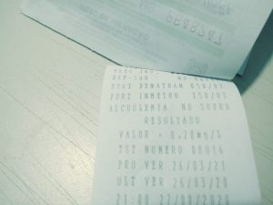 Ao conversar com o condutor de 40 anos ele relatou ter ingerido várias cervejas e logo depois veio a perder o controle do GM Prisma e chocar no Ford Fiesta que estava devidamente estacionado na via. Foi verificado que no interior do carro havia diversas garrafas de bebida, onde os policiais realizaram o teste do bafômetro e foi registrado 0,78 Mg/l no etilômetro.