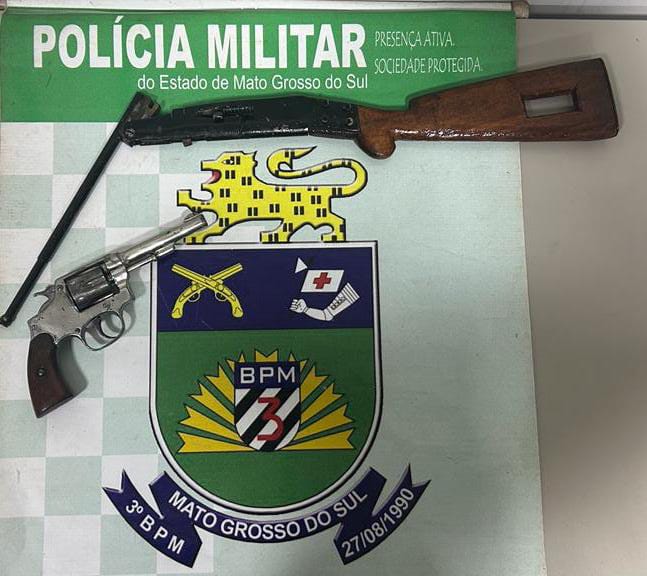 Policiais militares do 3º Batalhão de Polícia Militar de Dourados realizou a prisão, neste domingo (26/03), de dois indivíduos por tentativa de homicídio no Residencial Guassu, e outro homem de posse de duas armas de fogo, sendo um revólver calibre 32 com munições do mesmo calibre e uma espingarda artesanal calibre 22.