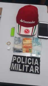 Os policiais se deslocaram até o local e visualizaram os jovens. Eles foram abordados e Identificados. No bolso de um deles, a equipe localizou uma porção de substância análoga a cocaína, além de R$ 127 em cédulas e moedas.
