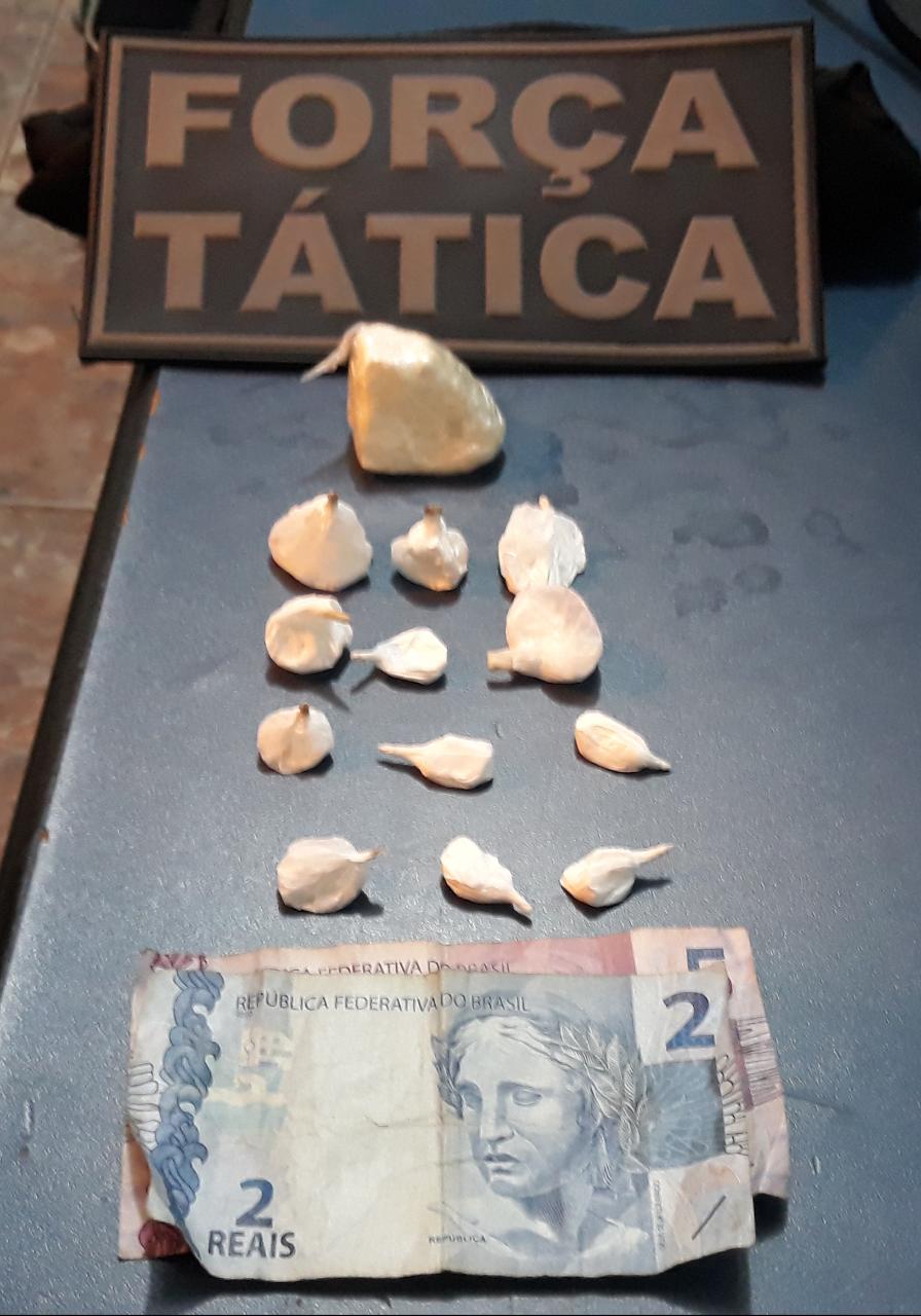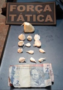 Já durante policiamento ostensivo e preventivo, a equipe policial encontrou um jovem de 19 anos que demonstrou nervosismo e desconforto com a aproximação da viatura jogando um objeto em uma lixeira e mudando de direção para evitara a abordagem. Após ser identificado e abordado, foi realizada vistoria no local em que o jovem jogou o objeto, sendo localizado um maço de cigarros contendo em seu interior doze porções de cocaína, que após pesadas totalizaram seis gramas.