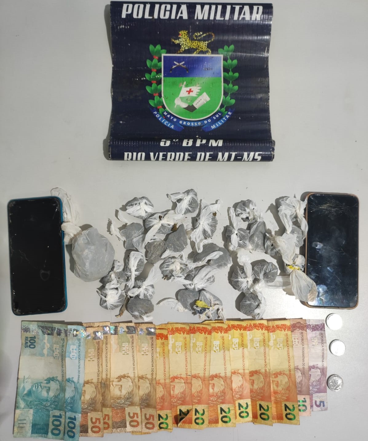 No local onde o outro jovem havia dispensado algo, os policiais localizaram um cigarro de maconha. Também foi encontrado com o jovem uma quantia de R$ 556,00 em notas de diferentes valores. Ao serem questionados, ambos confessaram que estavam envolvidos na venda de drogas.